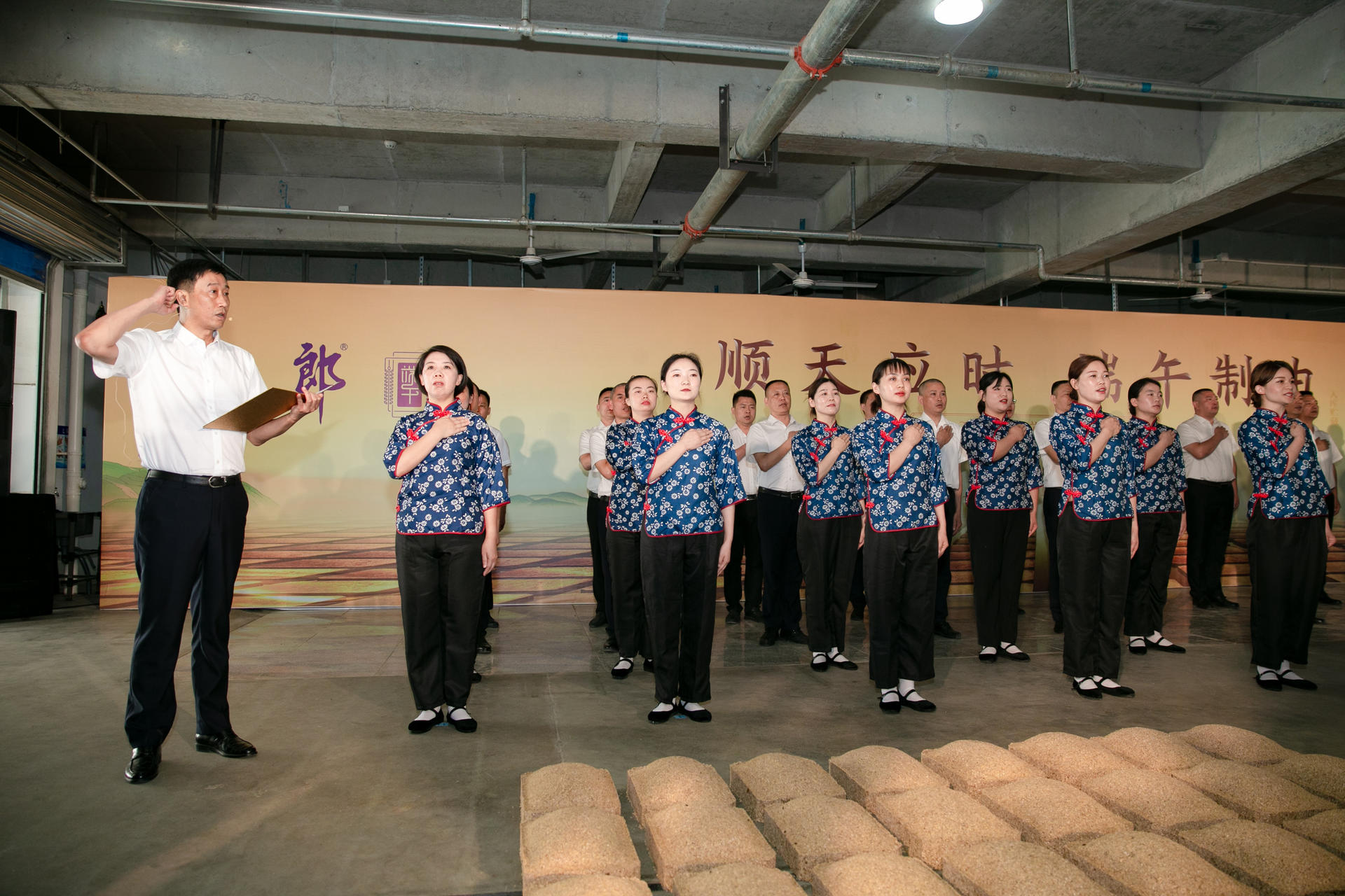 端午制曲,是郎酒新一年釀酒盛事的序曲。自端午起,被譽(yù)為中國醬酒黃金產(chǎn)區(qū)的赤水河谷氣溫升高,萬物勃發(fā),空氣中微生物的種類和數(shù)量增多,異?;钴S,為小麥的發(fā)酵創(chuàng)造了最有利的自然條件。郎酒莊園吳家溝生態(tài)釀酒區(qū)鼓聲鏗鏘、莽號長鳴,「順天應(yīng)時 端午制曲· 2021郎酒端午制曲大典」隆重舉行。伴隨汪俊林董事長宣布「2021郎酒端午制曲大典開始」,郎酒2021批大釀造生產(chǎn)序幕正式拉開。