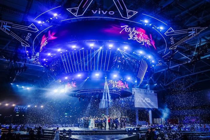 為了讓近萬人都能體驗(yàn)到一場沉浸式的視聽盛宴,塑造360°無死角的舞臺形式,搭配六芒星的結(jié)構(gòu)造型,仿佛是流浪地球推動地球的發(fā)動機(jī),承載vivo全體員工夢想和遠(yuǎn)方的動力源。它是帶動vivo人從”初心”走向”遠(yuǎn)方”的強(qiáng)大力量!,將再次讓夢想遠(yuǎn)航。同時,加上燈光、煙霧、聲效等的加持,吊足現(xiàn)場近萬名觀眾的胃口。