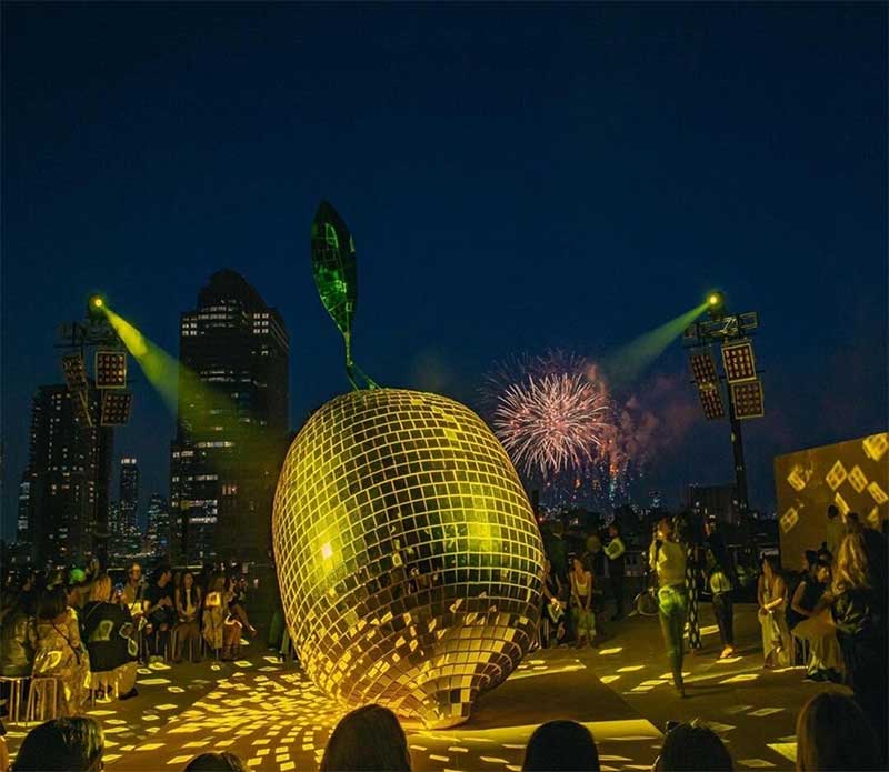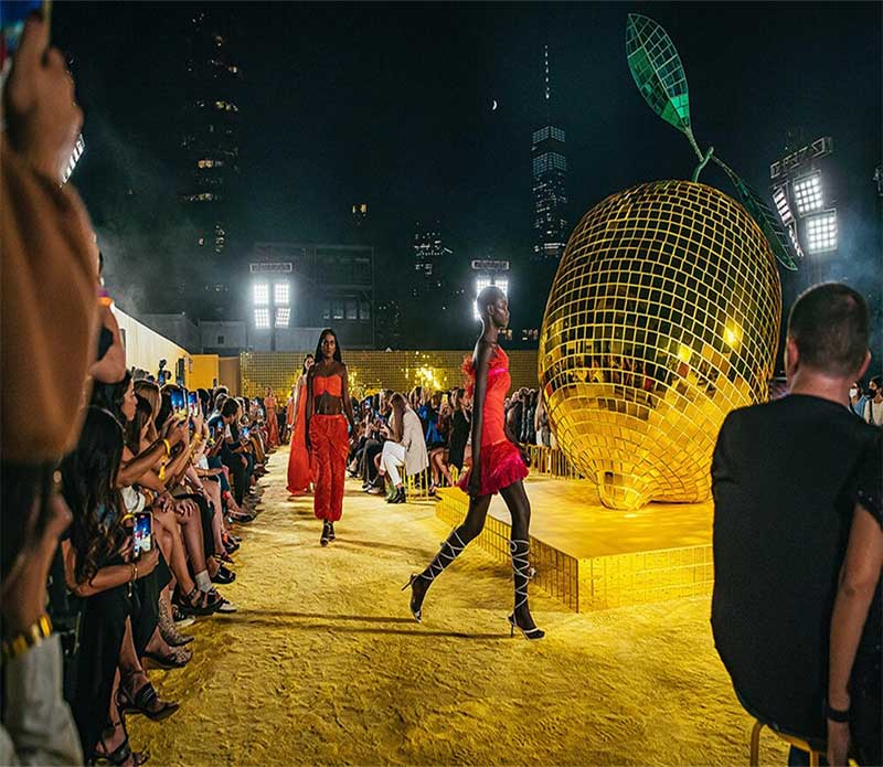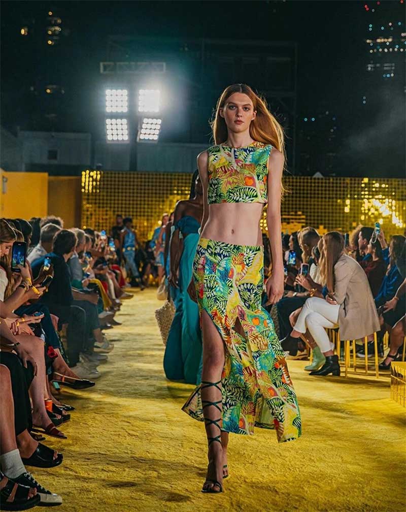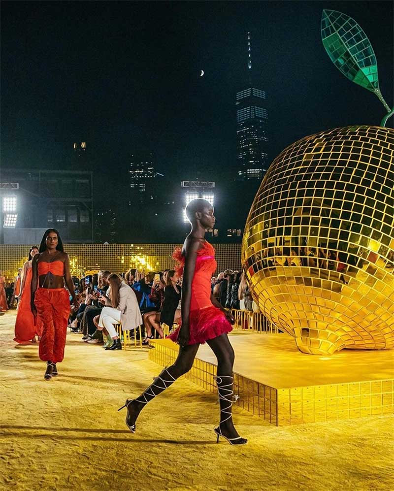莎拉·施陶丁格 (Sarah.Staudinger) 在紐約著名的活動場地春天工作室的露臺上舉辦了 2022 年春夏季時裝秀,客人們在日落時分俯瞰城市天際線,一起欣賞了一場金黃色的視覺盛宴。完美的新月在演出過程中變得更加明顯,場地中央有一個巨大的檸檬色的迪斯科舞會球,充滿夏日印花、暴露的服裝和一目了然的柑橘,同時還通過角斗士涼鞋等戰(zhàn)士風格的細節(jié)向過去兩年的挑戰(zhàn)致敬。