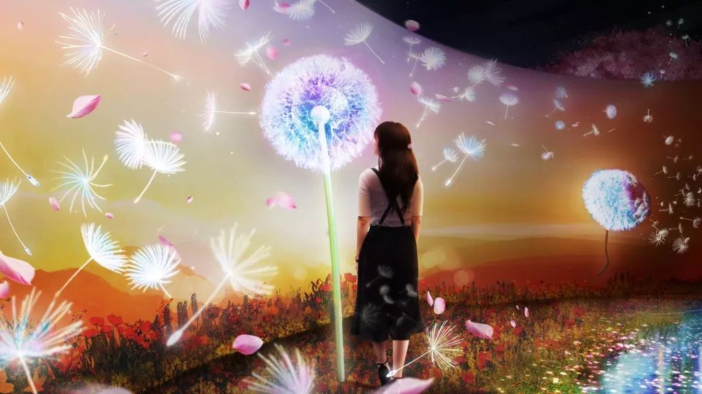 “Dandelion Hill"是融合數(shù)位互動的體驗區(qū),展區(qū)內有株如人般高的巨大蒲公英種子,參觀者只要對著蒲公英大口吹一啖氣,種子會隨風飛舞,同時景色也起了變化。