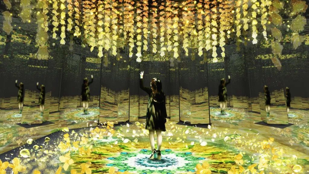 而“Glowing Garden"區(qū)是個鑲滿鏡子的金黃色花園,櫻花在「陽光」照耀下閃閃生輝,充滿活力。