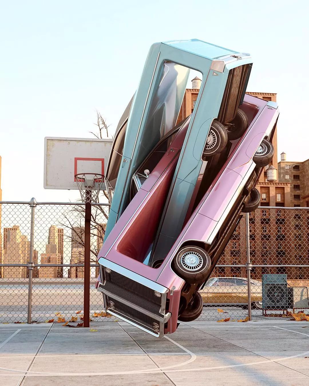 藝術(shù)家Chris Labrooy的一系列雕塑描繪了車輛扭曲后充滿幻想的美。充滿活力色彩的汽車被拉伸,扭曲和變形呈現(xiàn)出令人難以置信的場(chǎng)景。這些有光澤感、充滿活力的汽車雕塑看起來(lái)好像他們是真的,而不是幻想的作品。