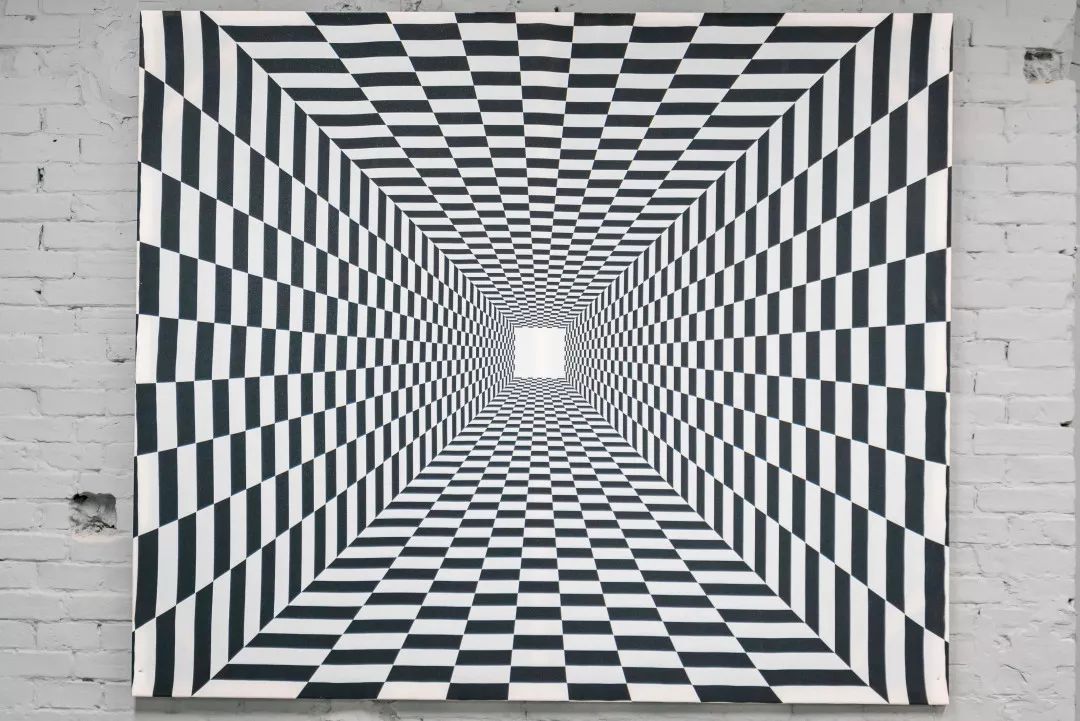 如果看動圖的話,你們肯定認為拿著相機在黑白格子的房間里倒退拍攝,其實哪有什么布滿黑白格的房間?你剛剛看見的只不過是一張掛在墻上的畫!二維平面的圖片瞬間擁有3D立體感,是不是已經(jīng)開始懷疑自己的眼睛了?看來在幻覺藝術博物館里,眼見為實已經(jīng)行不通了!