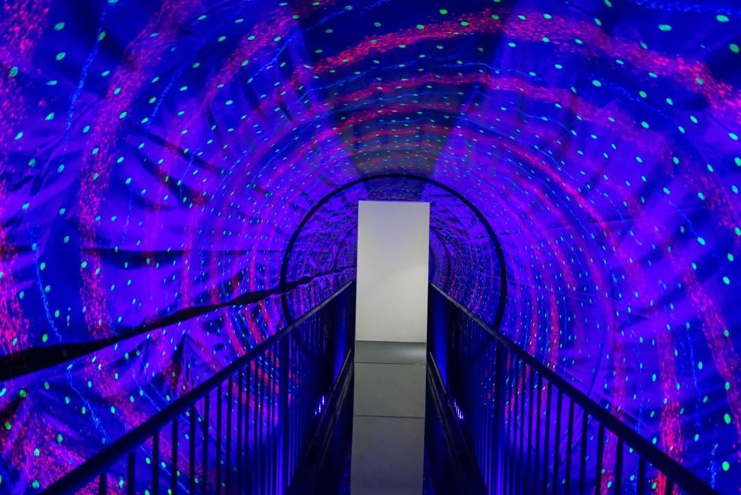終于到了MOI幻覺藝術博物館里最美的一個場景,穿越銀河,筆直的走道兩邊是無比絢爛的星空,不動的時候出片真的美炸!當這條星空隧道動起來的時候,可就不是拍照美不美的問題了,每往前走一步,你的重心都像被強行偏離了一樣,頭暈目眩東倒西歪!所以在玩這個裝置的時候千萬要把隨身攜帶的重要物品放好,甩下橋可就撿不回來了!