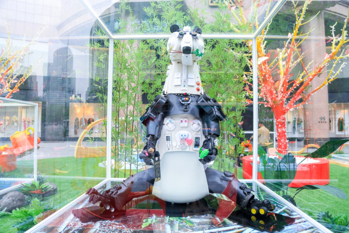 矗立在茂密竹林之中的,是大家熟悉的國寶大熊貓。肚皮上憨態(tài)十足的迷你熊貓,一眼就能來往的視線為它所聚,看似簡單明了的構(gòu)造之下,其實還暗藏了Gilles的巧思。陪伴在熊寶寶身邊的空調(diào)遙控器、手機和耳機,代表著她在傾聽寶寶的心聲。她想讓寶寶在舒適的環(huán)境成長,手上的”請勿打擾”標識牌,是她想讓寶寶不被外界所干擾。