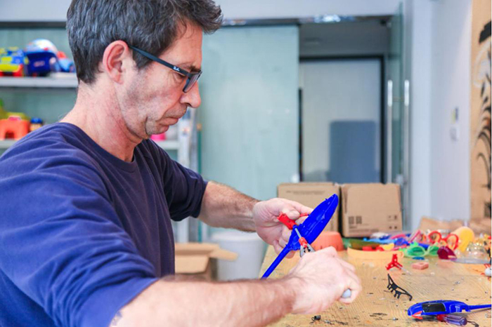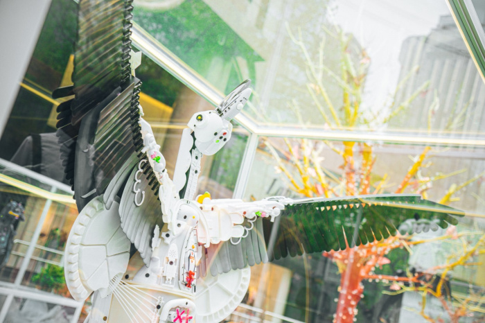 高昂的頭顱、振動的雙翅,還有胸口滿懷熱血的小紅人,將信天翁的飛翔夢展現(xiàn)得淋漓盡致。即便身處在科技高速發(fā)展的時代,它也依然眺望著遠方的天空,盼望著能再一次振翅高飛。這次,用廢棄的兒童飛機玩具,也能展現(xiàn)一個滿含故事的形象。