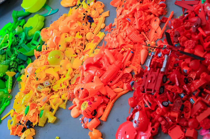 當大家熟悉的鍵盤、行李箱,玩具槍被賦予全新意義時會是什么樣子。Gilles通過獨具藝術(shù)性的創(chuàng)意組裝,為大家呈現(xiàn)了面前正顏厲色的大猩猩。嚴肅的表情和強勢的黑色,是他對外界立起的防御,而綠色則代表他對自然的歸屬感,截然相反的兩種顏色對比之下,是叢林守護者自持的威嚴。