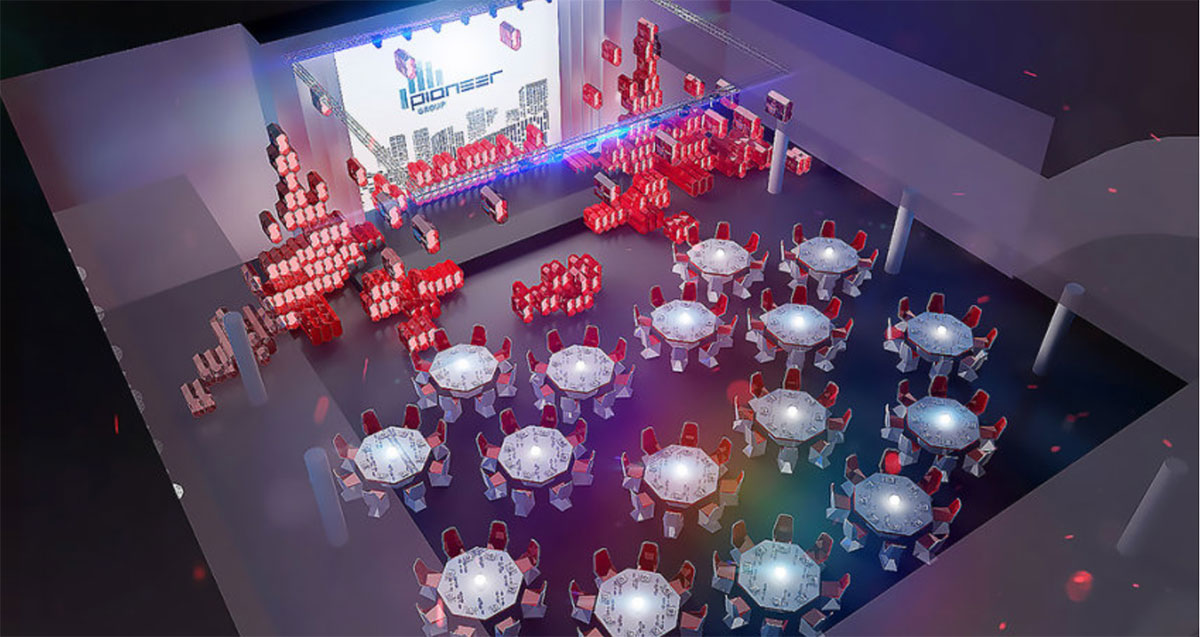 都說這是一場(chǎng)“蜂巢”的晚宴。活動(dòng)現(xiàn)場(chǎng)采用蜂巢六邊形元素位整個(gè)活動(dòng)的設(shè)計(jì)創(chuàng)意點(diǎn)。舞臺(tái)兩邊采用多個(gè)六邊形不規(guī)則的疊加,舞臺(tái)上方的也同樣用多個(gè)不同尺寸的六邊形做造型設(shè)計(jì),就連餐桌也是按六邊形設(shè)計(jì)的,將整個(gè)活動(dòng)現(xiàn)場(chǎng)打造成一個(gè)“蜂巢”,用辛勤的小蜜蜂寓意在座賓客事業(yè)道路上的努力拼搏、兢兢業(yè)業(yè)。