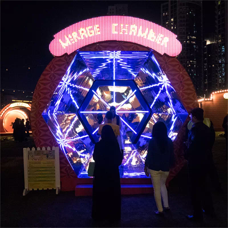 開業(yè)活動(dòng)慶典的現(xiàn)場設(shè)計(jì)搭建了一系列定制的結(jié)構(gòu),覆蓋了迪拜塔公園11000平方米的面積,以滿足不同活動(dòng)項(xiàng)目的需求,從飛鏢游戲、小馬自行車賽道、小馬騎乘、馬鞍秋千、愛馬仕鏡子屋、萬花筒、釣鴨子和翻滾游戲等等。