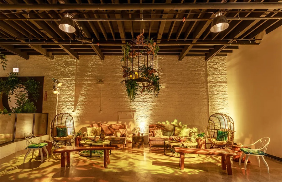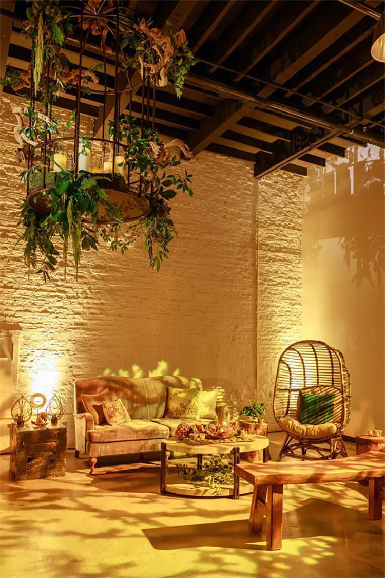 你是否見過處處充滿生機(jī)的派對活動?你覺得充滿生機(jī)的派對活動是呈現(xiàn)什么樣風(fēng)格的?一場落日黃搭配綠色和粉色的派對活動,就這樣不經(jīng)意間營造了一種慵懶而不失生機(jī)的氛圍,派對活動現(xiàn)場通過木質(zhì)和柳條家具、豐富的綠色植物,再用一個裝滿蠟燭和綠色植物的圓形鳥籠裝置優(yōu)雅地懸掛在休息區(qū)上方,整個派對活動現(xiàn)場瞬間呈現(xiàn)了一種看似慵懶實則生機(jī)盎然的氛圍,舒服優(yōu)雅極了。