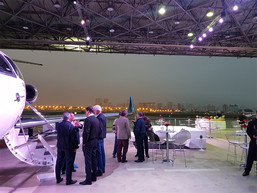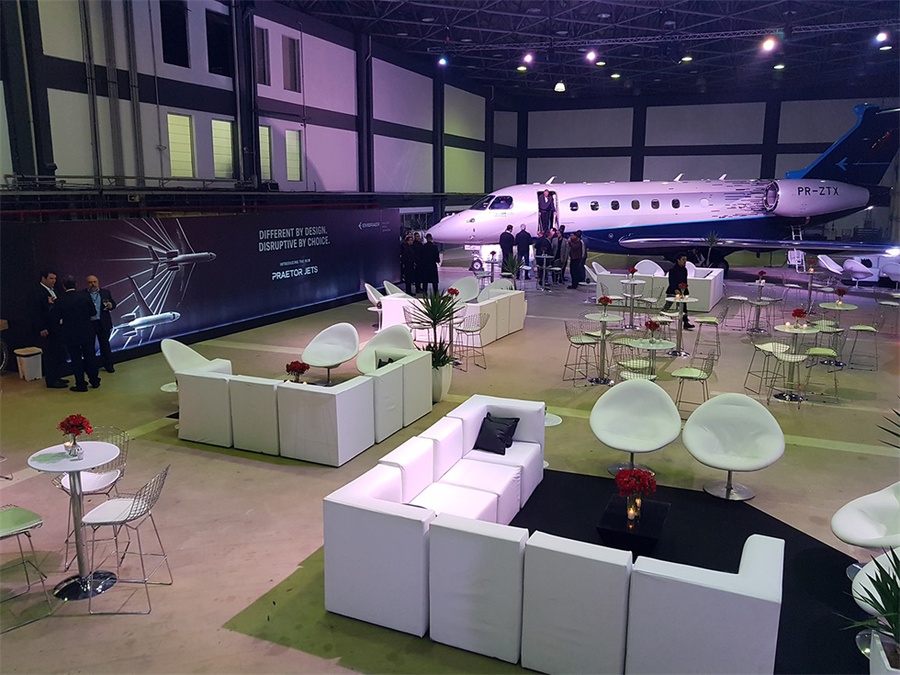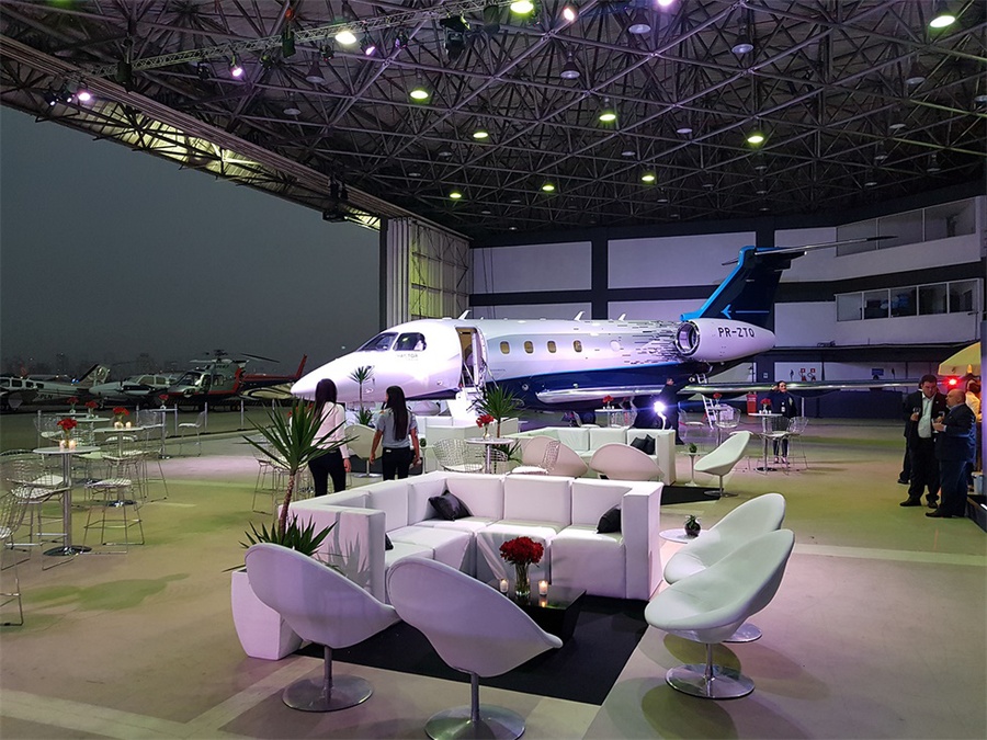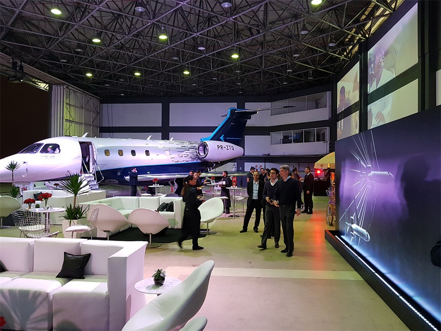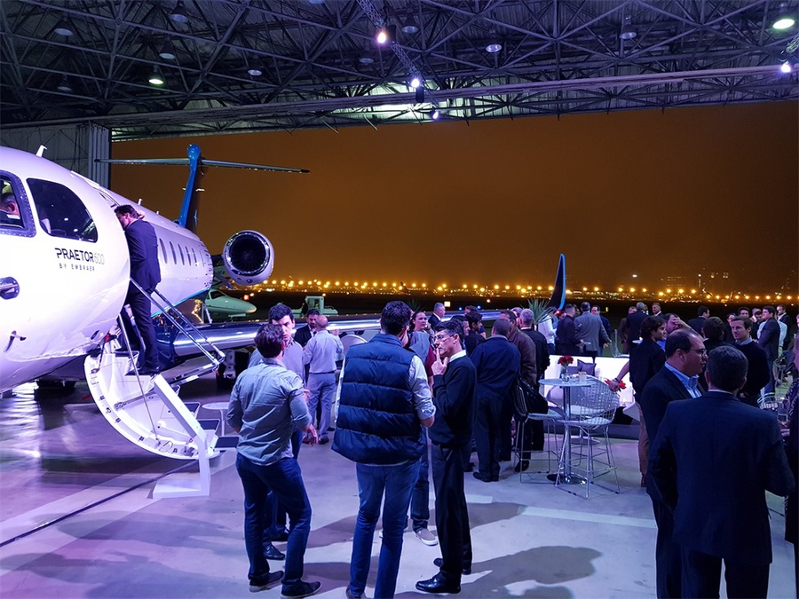 巴西航空工業(yè)公司在孔戈尼亞斯機(jī)場(chǎng)為其新的“執(zhí)行官”公務(wù)飛機(jī)舉行了一場(chǎng)推介會(huì),該活動(dòng)沒有采用傳統(tǒng)的會(huì)議模式,而是選擇了更加輕松的雞尾酒會(huì)的形式。
