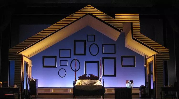 這幅舞臺劇照出自他的舞臺作品—-《I Do! I Do!》,可謂堪稱經(jīng)典,簡單的線條和幾何就給人營造出一個靜謐的家的環(huán)境,讓觀眾心歸于安寧。