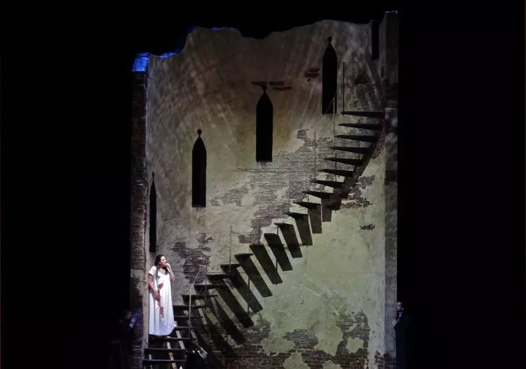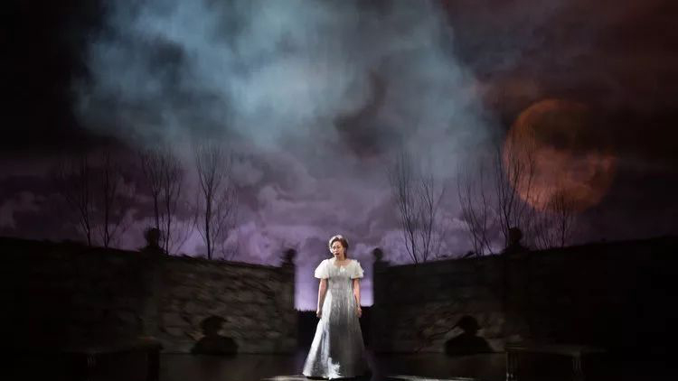 對現(xiàn)代舞臺技術(shù)的運用,也體現(xiàn)在Wilson的作品中,比如這部《Lucia Di Lammermoor》(拉美莫爾的露琪亞),就用簡單的舞臺置景配合多媒體打造出了很有意境的舞臺環(huán)境。