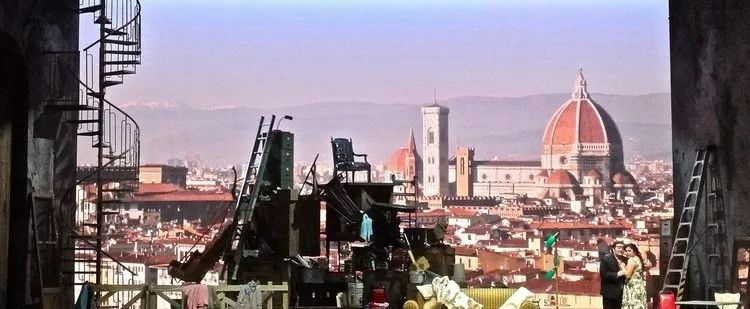 室內(nèi)和戶外的部分分別被場景布置區(qū)分開來,特別值得一提的是戶外的部分,既有寫實的表現(xiàn),又有充滿意境和象征的部分。