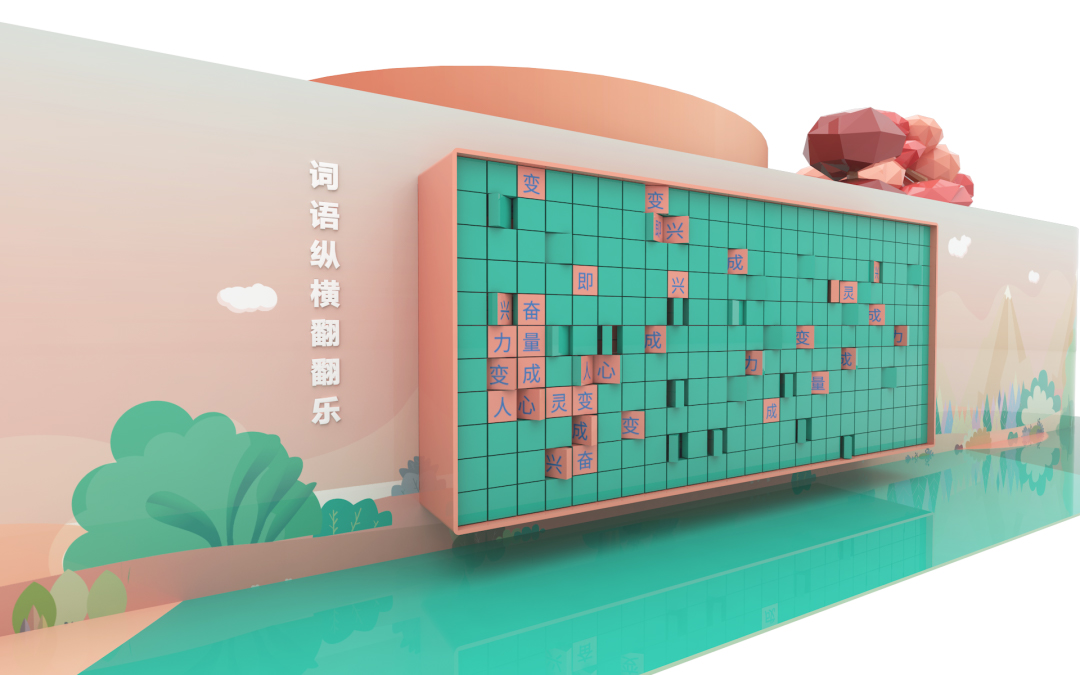 詞語(yǔ)縱橫翻翻樂?:外墻設(shè)有方塊字,不管哪一塊與上下左右,均可組成詞語(yǔ)。