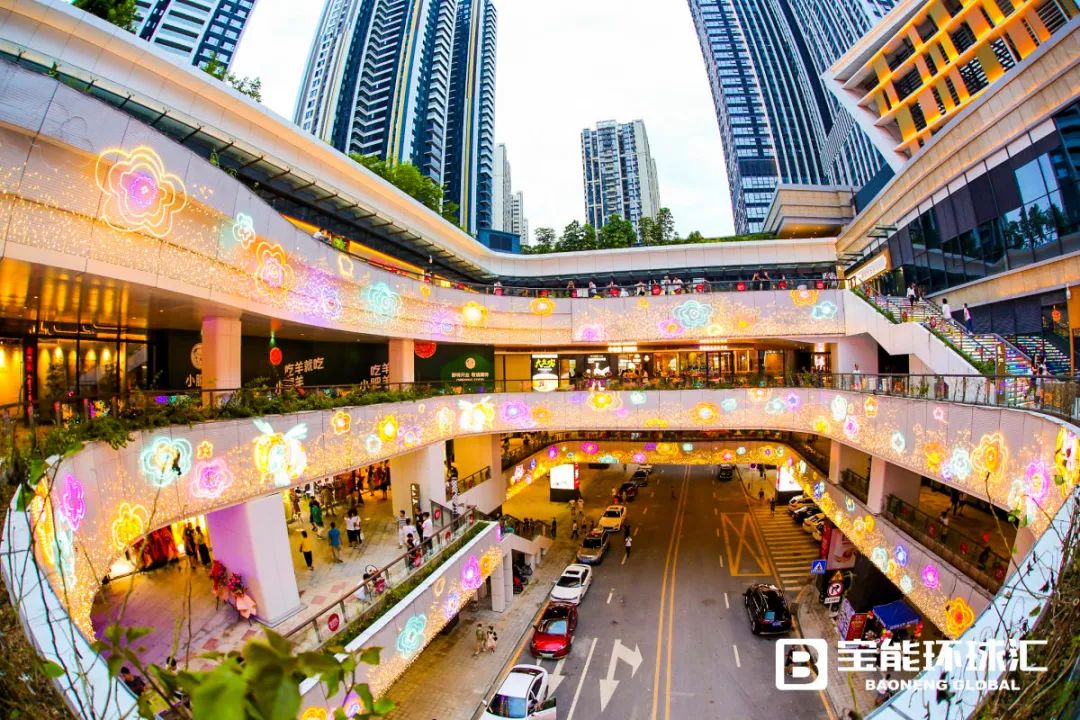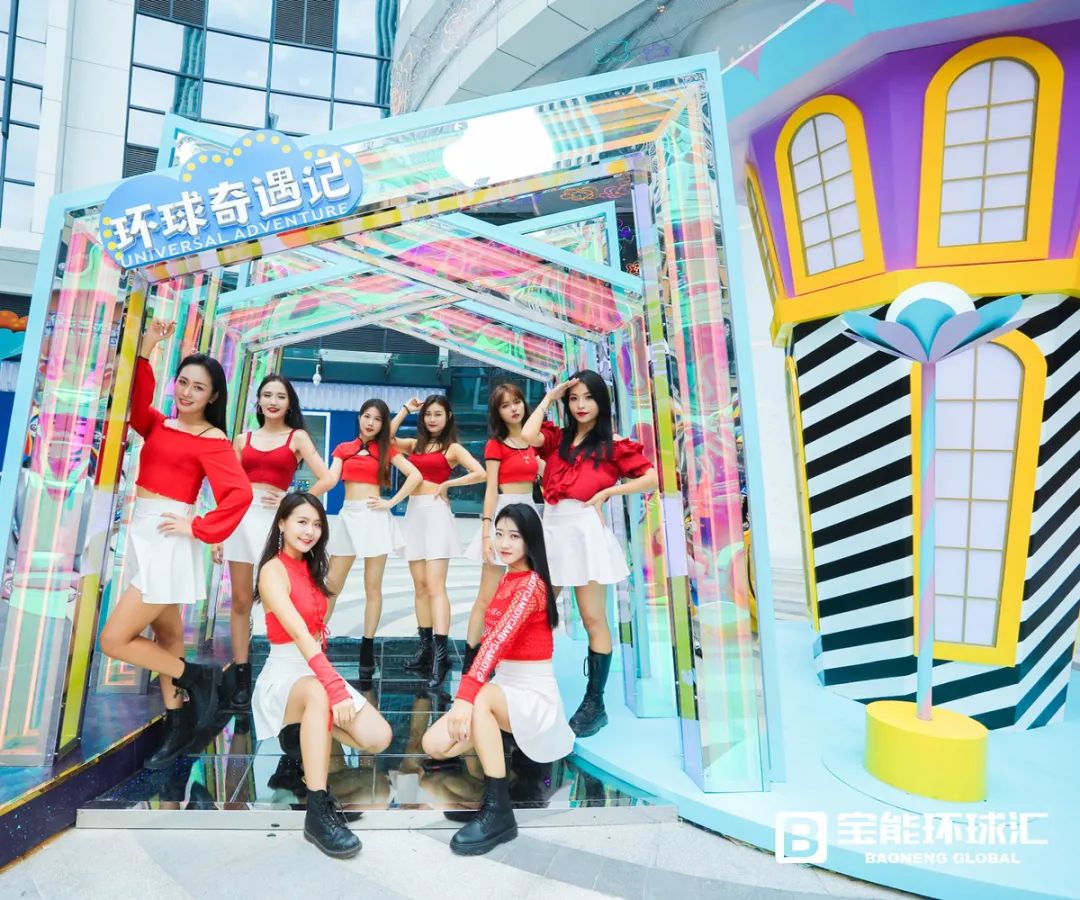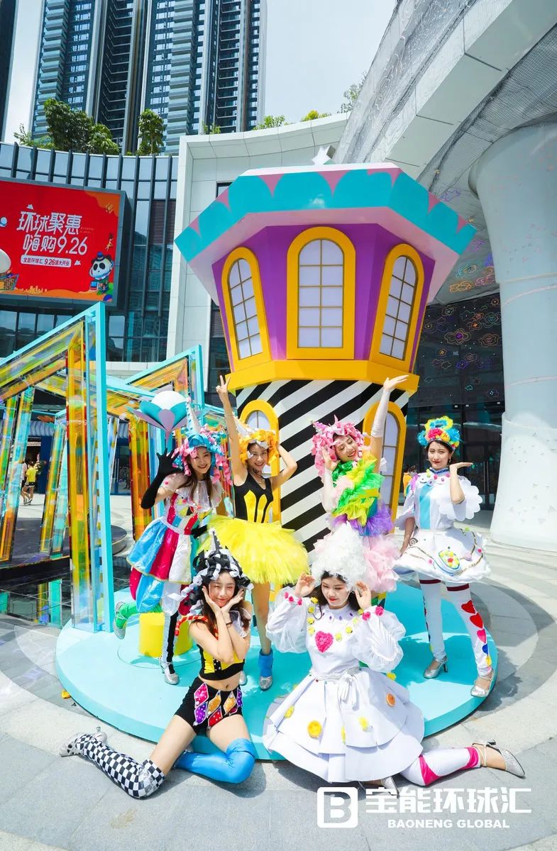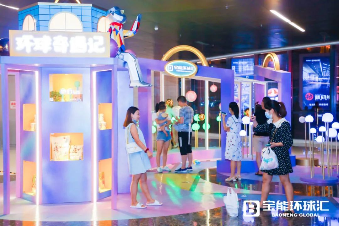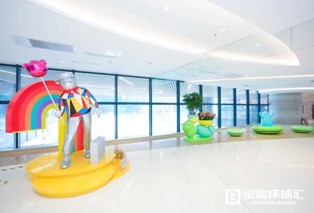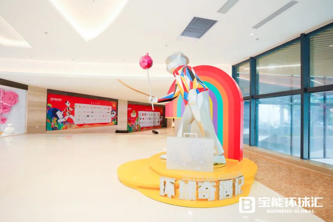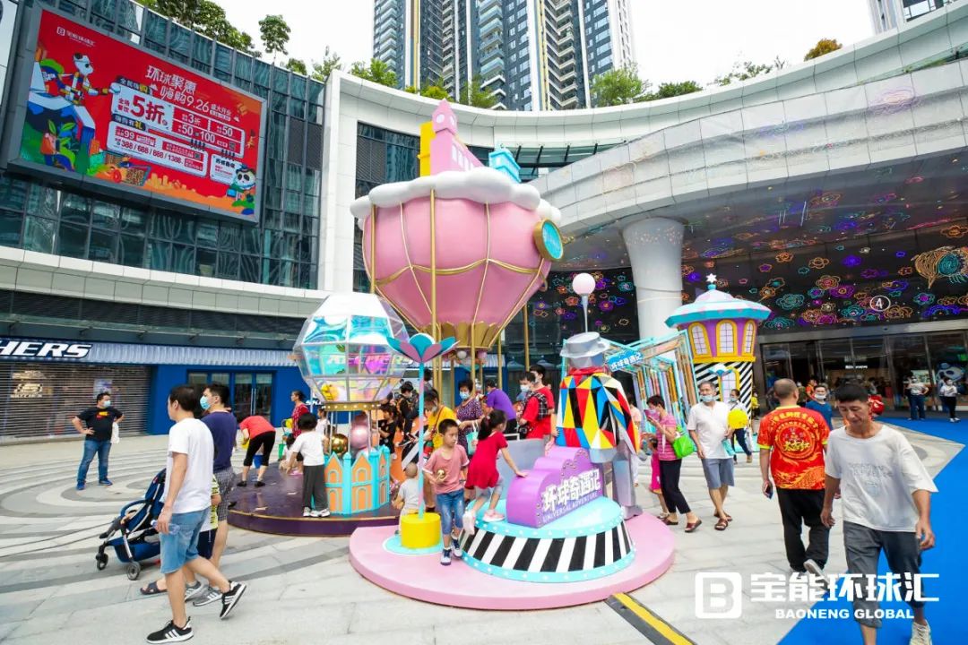同時(shí),西麗寶能環(huán)球匯利用IP形象融合美陳,結(jié)合空間屬性,在商場(chǎng)不同樓層塑造多處夢(mèng)幻場(chǎng)景,以此創(chuàng)造社交互動(dòng)、個(gè)性有趣的拍照打卡處,形成項(xiàng)目與眾不同的記憶點(diǎn),如玩轉(zhuǎn)光影、色彩斑斕的“環(huán)球之門”,有著熱氣球和城堡的“尋夢(mèng)之亭”,可眺望花花世界的“發(fā)現(xiàn)環(huán)球匯”,以及“時(shí)光治愈之旅”“奇幻列車”等。除了IP吉祥物,在體量1萬(wàn)㎡的環(huán)形廣場(chǎng),還有優(yōu)美景觀雕塑、藝術(shù)互動(dòng)裝置、酷炫燈光布置、陽(yáng)光草坪、夢(mèng)幻花園等,再通過水、木等自然元素的點(diǎn)綴,商業(yè)體驗(yàn)的巧妙融合,項(xiàng)目成為立體人文生態(tài)空間。