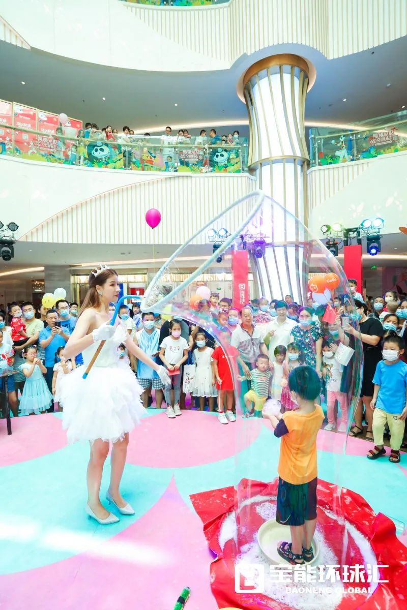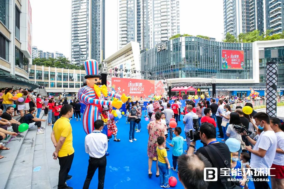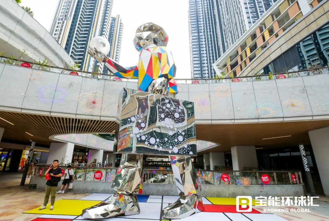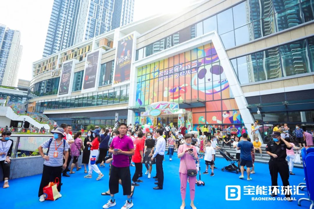 活動(dòng)期間,西麗寶能環(huán)球匯以藝術(shù)、潮流、活力為主題,緊扣“藝術(shù)體驗(yàn)MALL”的定位,為人們帶來(lái)藝術(shù)文化盛宴,如十二花神·寶能華裳文化節(jié)、“不止生活”音樂節(jié)、環(huán)球馬戲節(jié)等。西麗寶能環(huán)球匯將商業(yè)項(xiàng)目人格化,為項(xiàng)目打造了原創(chuàng)IP形象——愛好藝術(shù)鑒賞、環(huán)球旅行和運(yùn)動(dòng)的熊貓人“滾滾先生”,向人們傳遞趣味好玩的品質(zhì)生活理念。在西麗寶能環(huán)球匯L1層的環(huán)形休閑廣場(chǎng),上身色彩鮮艷、高達(dá)10米的IP吉祥物“滾滾先生”以兼具時(shí)尚感和街頭藝術(shù)氣息的形象隆重登場(chǎng),成為新晉潮流標(biāo)志。