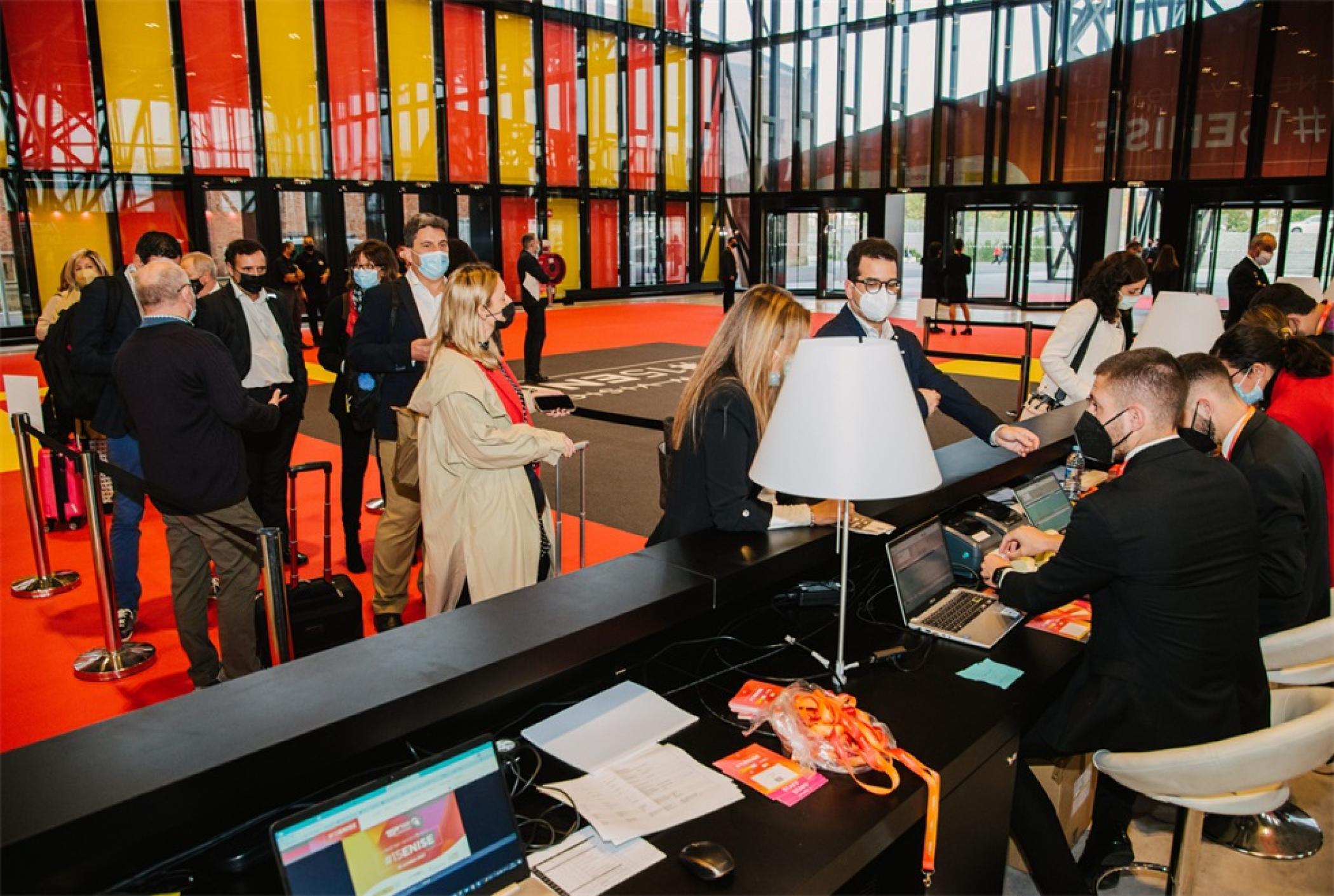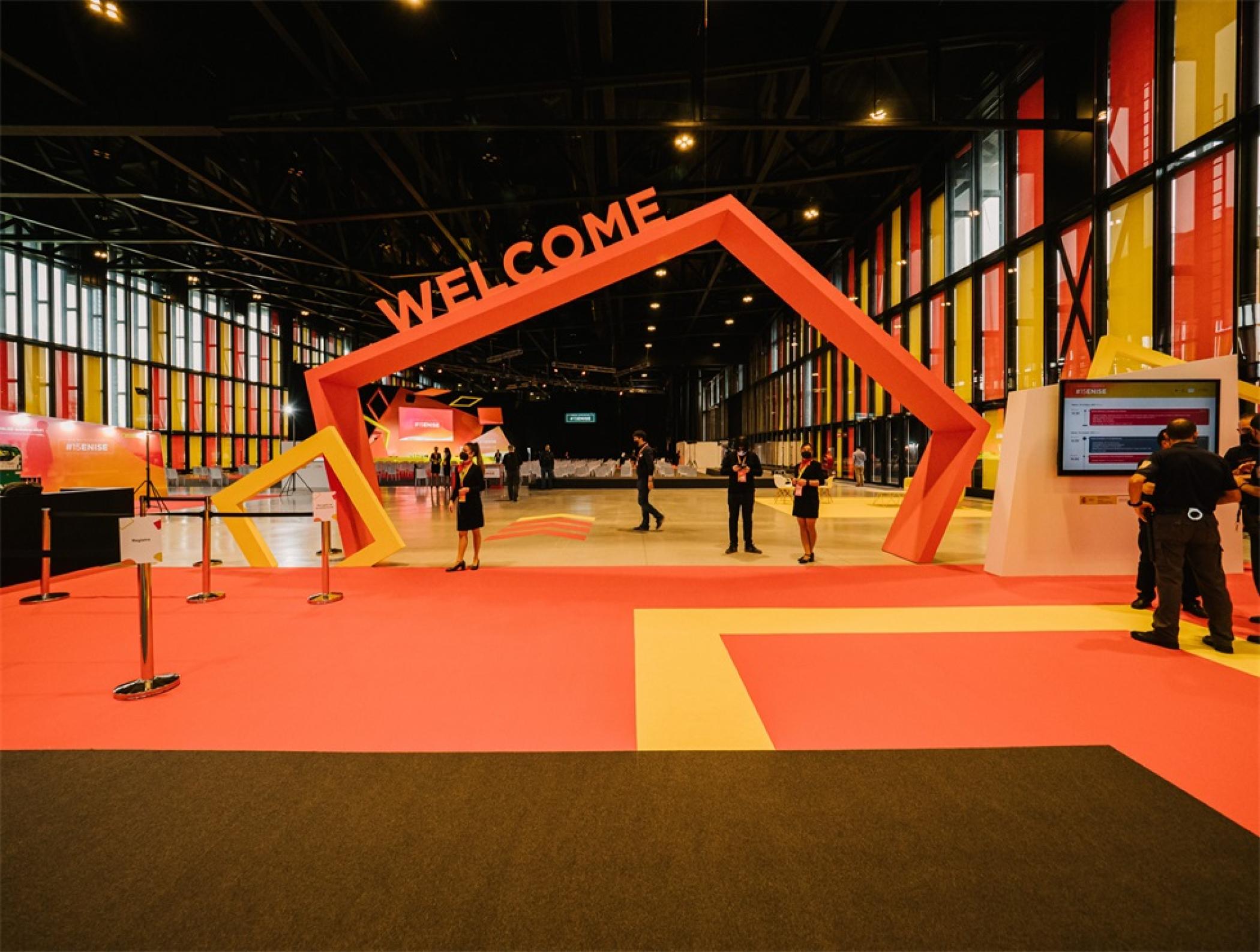 第十五屆信息安全國際會議(Enise)希望活動中的圖像更人性化、更有機和更通用,使其更加平易近人。因此,活動設(shè)計了新的圖形和紋理,將企業(yè)顏色(紅白黃)融合在一起,產(chǎn)生新的色調(diào)、新的細微差別,這代表了變化和新的機會。指紋圖案代表了人類和數(shù)字的共存,以及兩個世界的聯(lián)盟,突出企業(yè)紅色作為圖形線條的基礎(chǔ)背景,以賦予Enise應(yīng)有的存在感。從整體方法出發(fā),將圖形線條在視覺上整合到空間設(shè)計中,并根據(jù)每個區(qū)域的尺寸及其建筑結(jié)構(gòu)進行應(yīng)用。