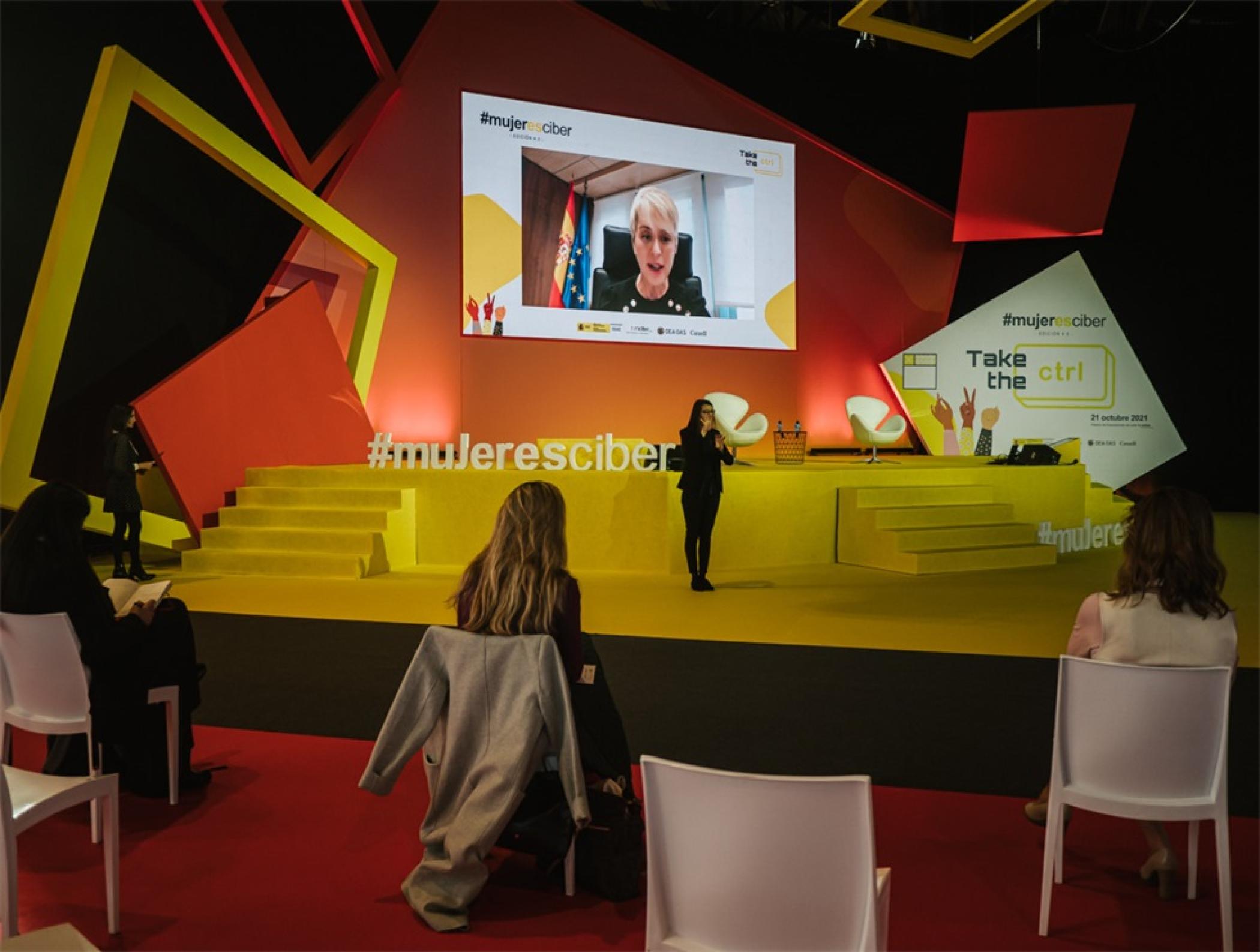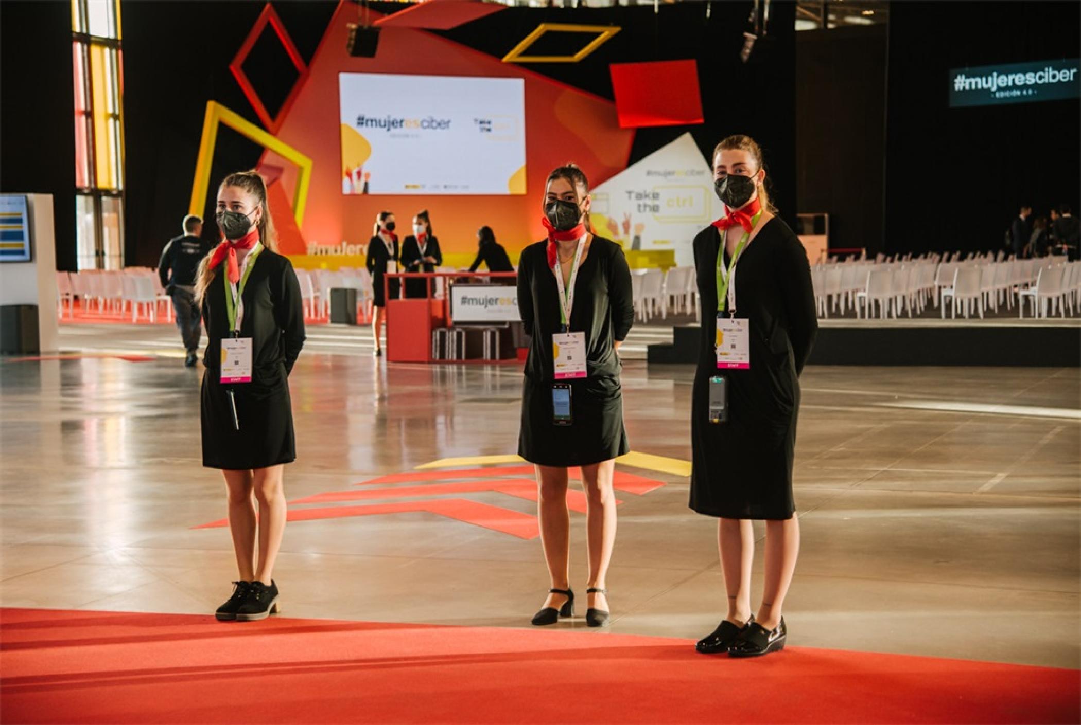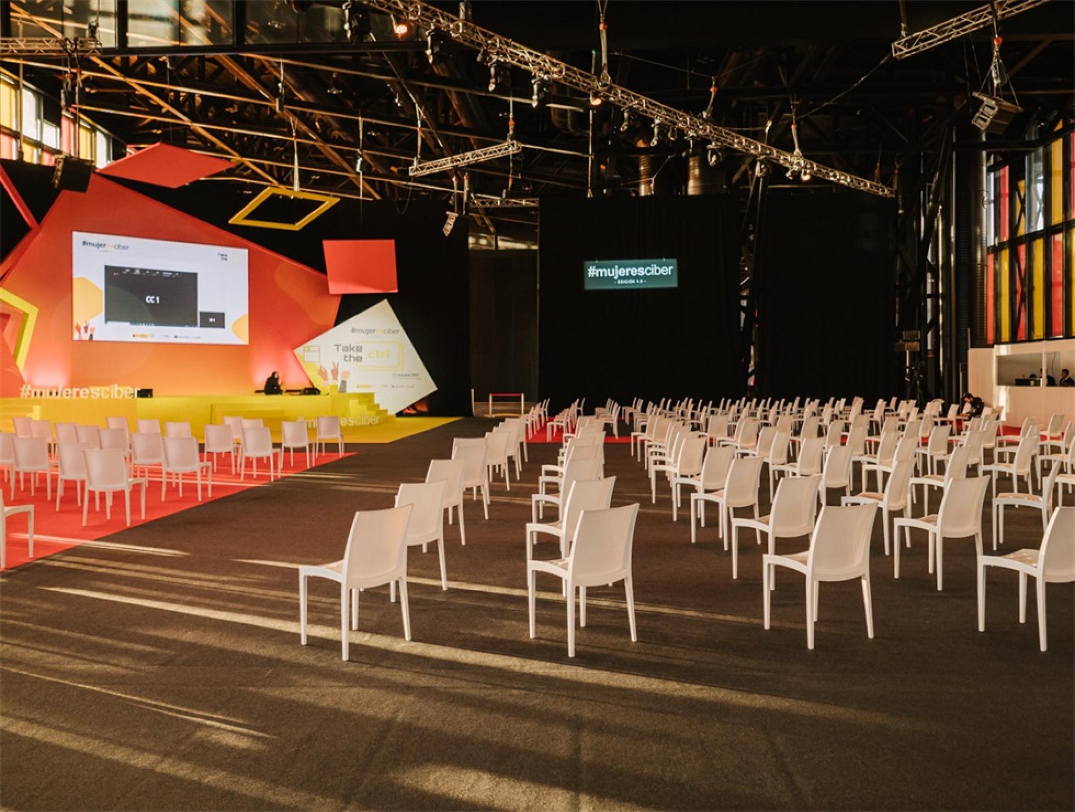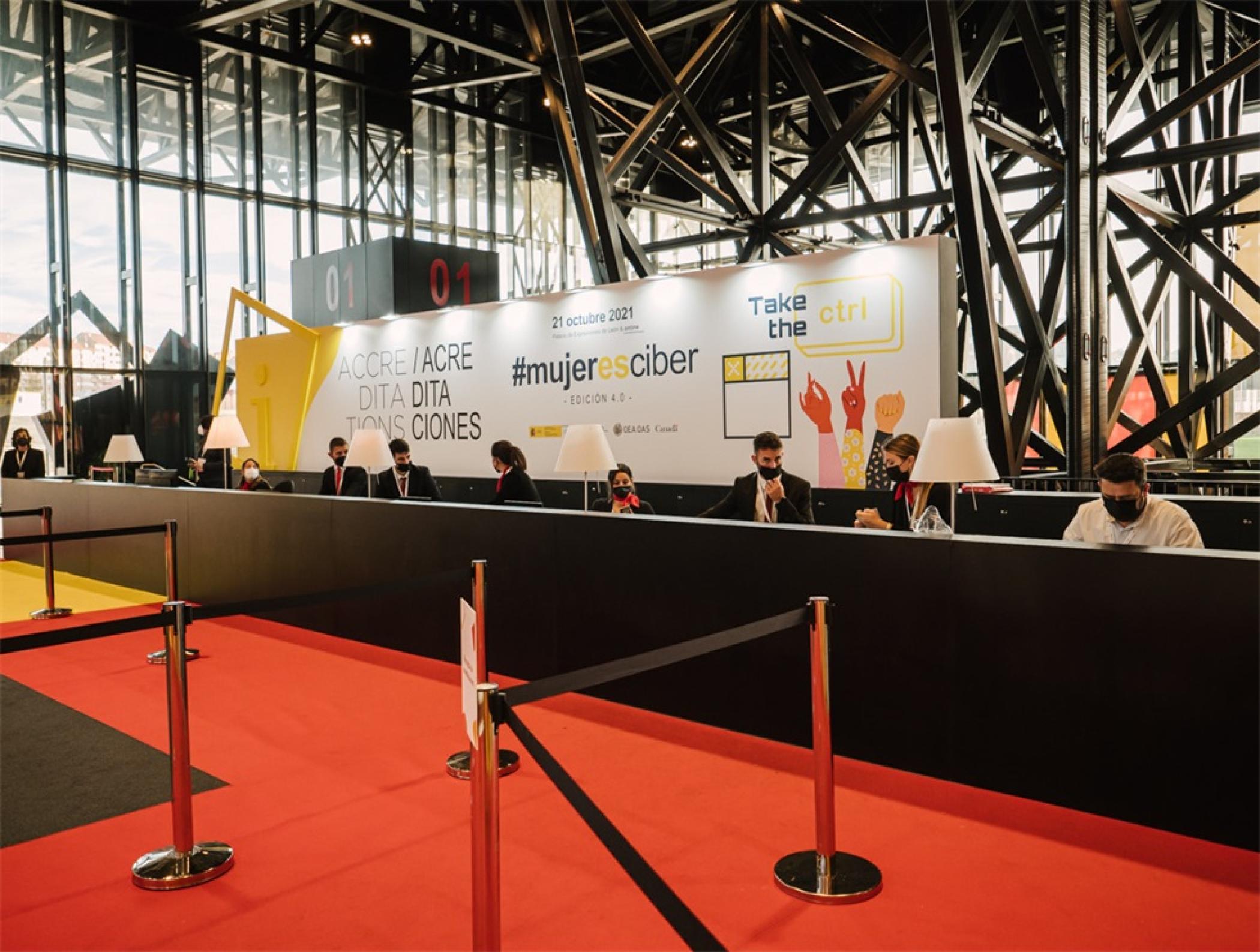 一個梯形形狀的圖形和INCIBE標(biāo)志的解構(gòu)圖形構(gòu)成了場地的主入口拱門。在結(jié)構(gòu)上設(shè)計了具有不規(guī)則形狀的大型結(jié)構(gòu),以拱門的形式作為進入每個空間或作為活動的視覺識別圖形,并將其運用到現(xiàn)場的其他方面如裝飾、平面圖形、標(biāo)牌等。作為裝飾和空間設(shè)計的通用視覺符號,無論是懸掛在展館中還是作為補充的裝飾,都采用了INCIBE(信息安全國際會議)徽標(biāo)的符號。同時還設(shè)計了不同的尺寸和顏色搭配:組合色或純色被隨機分散在空間的設(shè)計中,并作為一個統(tǒng)一的元素,提供平面、立體的視覺元素,并強化了INCIBE在活動中的形象。還應(yīng)用了INCIBE手冊的色系,使品牌的存在在整個路線上都清晰可見。對于外觀,則有一個圖形構(gòu)圖,將活動的圖像放在梯形上,并在場地的主入口處解構(gòu)了INCIBE標(biāo)志的細節(jié)。