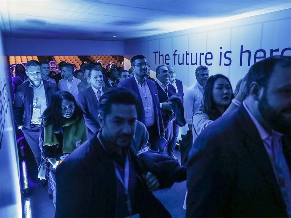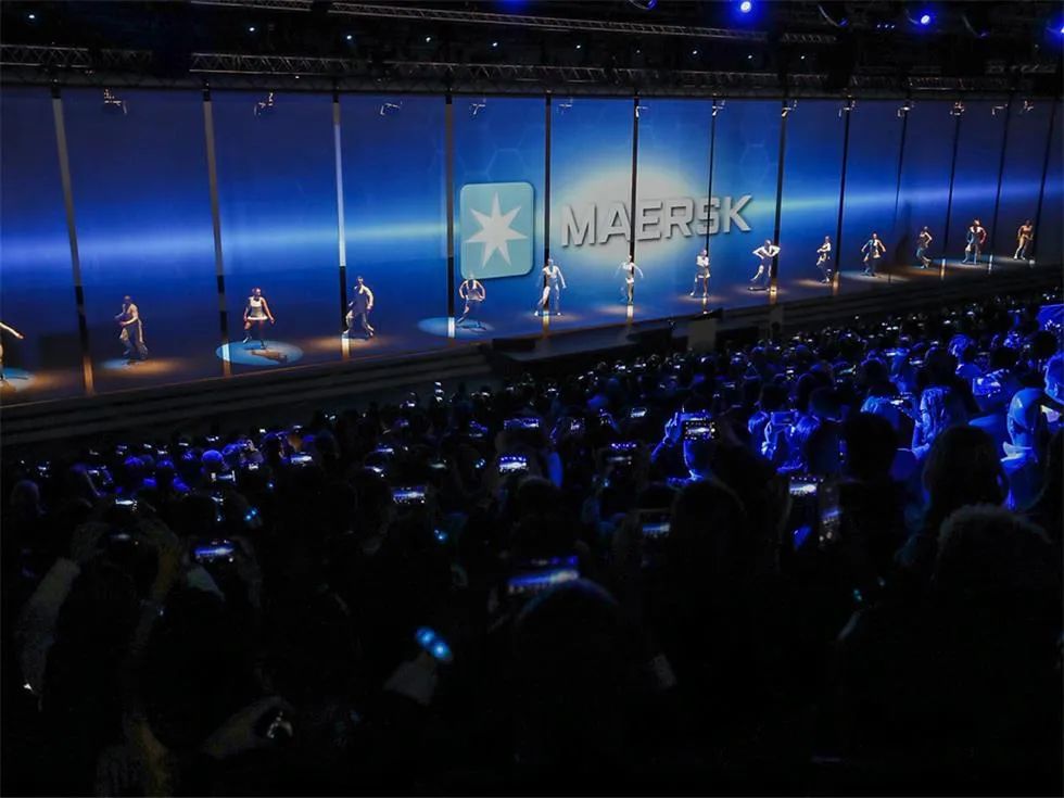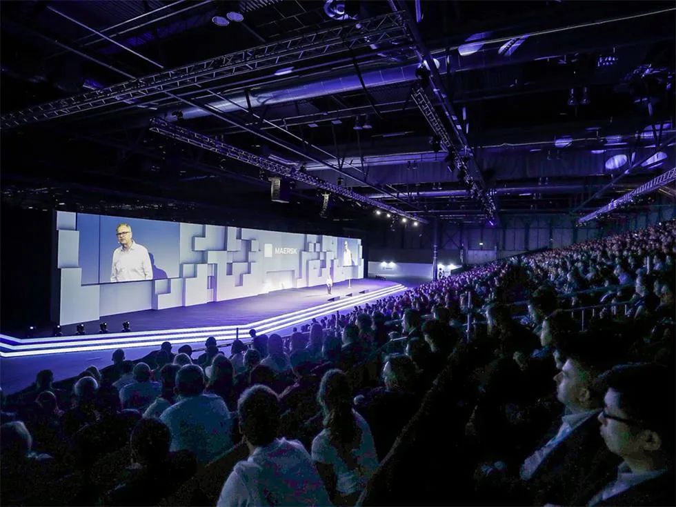 步入現(xiàn)場客人們首先進入的是第一個舞臺區(qū),這是一個52米長的投影映射背景舞臺,它代表著過去和舊的思維模式。與會者在聽取了關于馬士基的過去以及馬士基為什么要成為一個統(tǒng)一的組織的簡短介紹后,馬士基CEO斯倫?斯庫親自帶領大家走過過去(第一個舞臺),走進代表未來的第二個舞臺。為了營造出一種新舊交替的物理變化過程的體驗,活動使用了三個大型集裝箱來制作隧道,連接了分別象征過去與未來的第一個舞臺和第二個舞臺,客人們通過進入真實的隧道,從身體上體驗著馬士基正在經(jīng)歷的轉變。會議的第二天,進行了兩個學習目標的培訓——客戶知識共享和分部知識共享。最后一天,參與者開始進行分組討論,反思自己的學習成果。