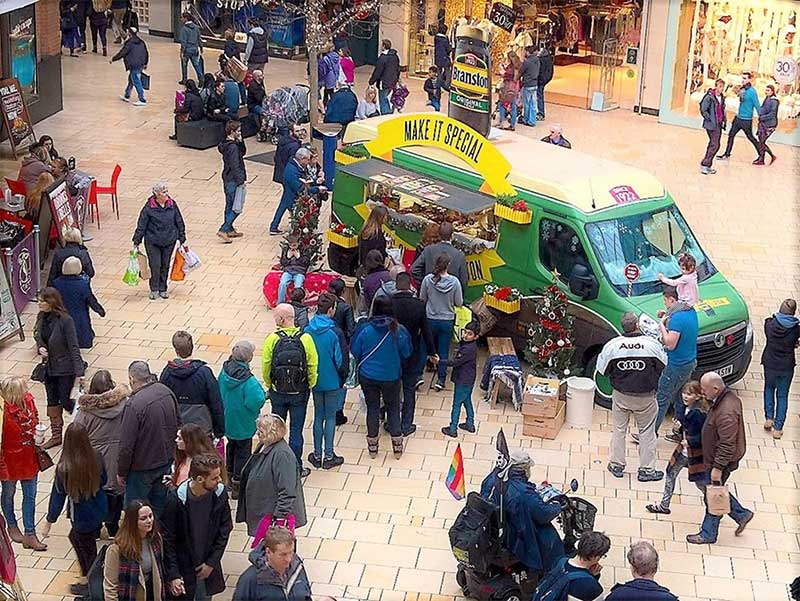 活動除了在各地的火車站、購物中心、圣誕市場、社區(qū)中心等地點舉行,布蘭斯頓品牌還與月神影院(英國露天電影放映品牌)、野餐音樂會合作在現(xiàn)場舉行試嘗活動。