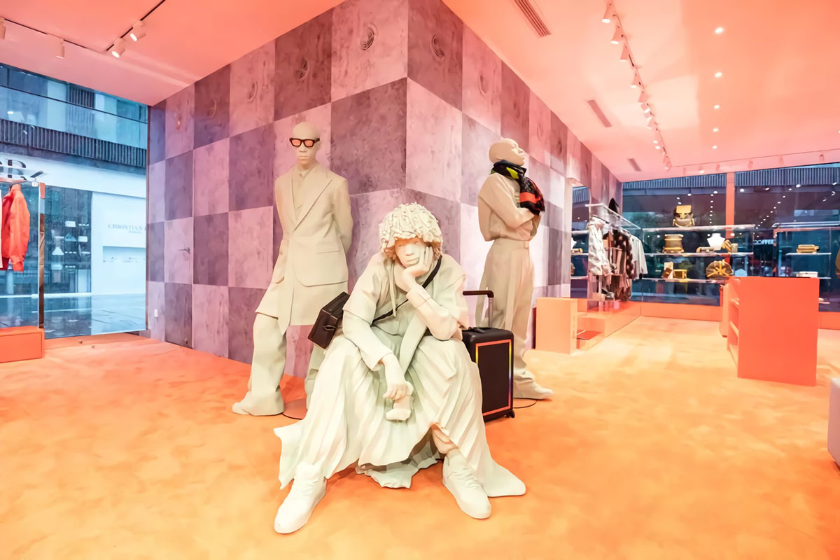 LV快閃店的花樣越來越多樣化了,這不,成都的這家LV快閃店就開在大馬路上,透明玻璃的裝置增加了整個快閃店的空間感和敞亮程度,一抹抹橙色延伸到外面,就連那些模特們都耐不住在快閃店里等客的寂寞,紛紛跑到大街上晃悠了,又是翻跟斗又是倒立的,這一個個體育健兒般的敏捷身姿,妥妥地在召喚著客戶快來LV快閃店坐坐,述說著我們還有更多不一樣的兄弟等著招呼你們。