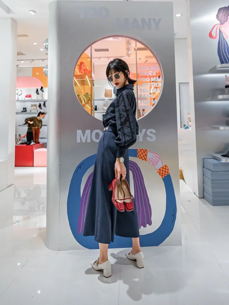 每個季度,TooManyShoes都會跟不同的藝術(shù)家跨界合作打造聯(lián)名款,把藝術(shù)變成逛街的重要組成部分。這一次,TooManyShoes X 孫佳藝聯(lián)名藝術(shù)pop-up店落戶魔都,方寸之間,果然都是滿滿的驚喜。靚麗的橙黃色搭配淡雅炫目白,目之所及都被美鞋填滿,墻上還鋪著可愛又有童趣的藝術(shù)家聯(lián)名插畫,仿佛誤入一間專屬于鞋履的趣味博物館。