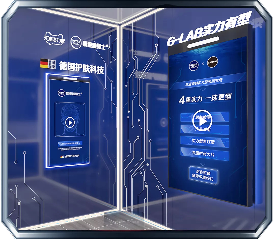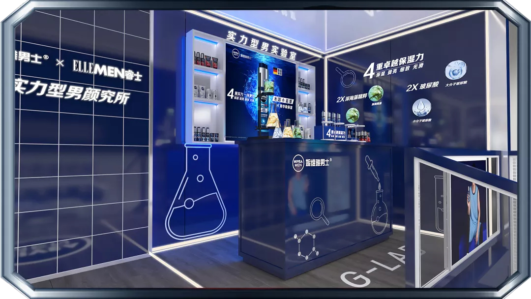 來到快閃店的第一站,映入眼簾的藍白色系裝置格外吸晴,進入新科技肌膚測試區(qū),進行定格拍照后,關(guān)注妮維雅男士微信公眾號,便可解鎖你的肌膚測試報告。