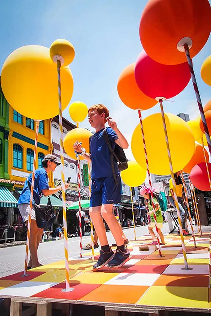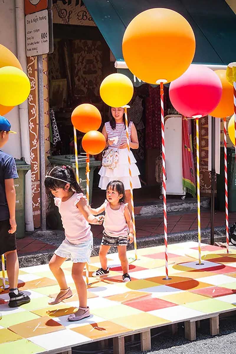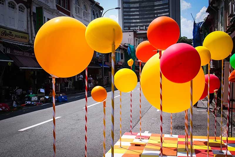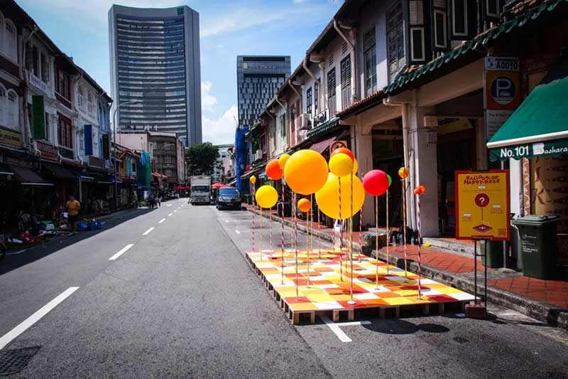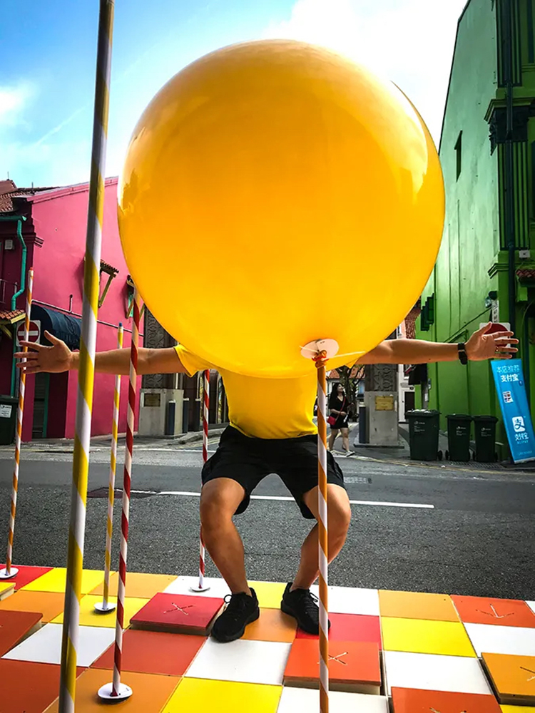 PMQ元創(chuàng)方聯(lián)合設計團隊One Bite Design Studio帶來奇妙的氣球叢林「Stamp To Smile」——設置多個氣閥踏板,踩下打氣,把氣球充至圓滿,再把煩憂踩走忘記。不過,氣球也會和你玩游戲。好好尋找你腳下的踏板,是讓哪顆氣球鼓起膨脹? 它在眼前最近處,還是在身后的角落洋洋得意?帶著希望找尋,驚喜或遲或早、或遠或近總會靠近; 你我并肩同行,快樂和驚喜就會長出森林,步履不停,生生不息。