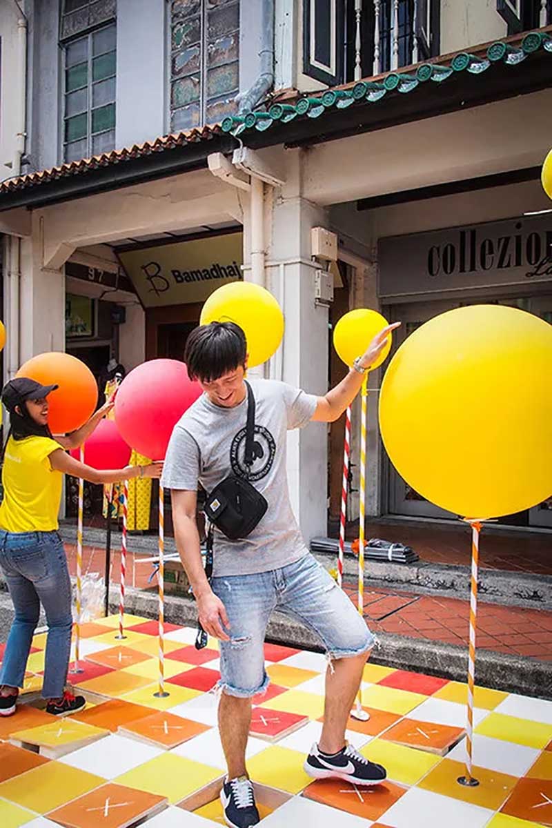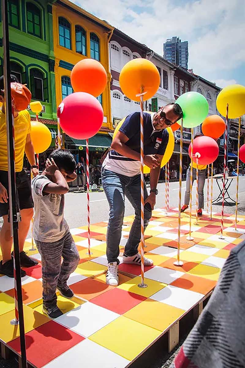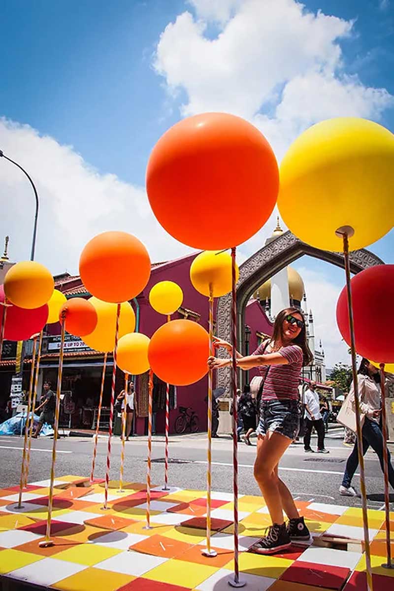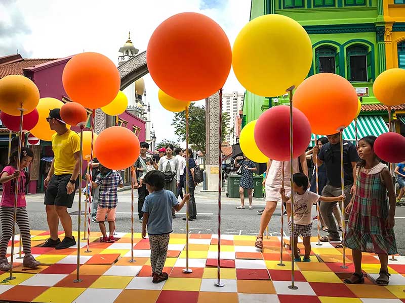 PMQ元創(chuàng)方聯(lián)合設計團隊One Bite Design Studio帶來奇妙的氣球叢林「Stamp To Smile」——設置多個氣閥踏板,踩下打氣,把氣球充至圓滿,再把煩憂踩走忘記。不過,氣球也會和你玩游戲。好好尋找你腳下的踏板,是讓哪顆氣球鼓起膨脹? 它在眼前最近處,還是在身后的角落洋洋得意?帶著希望找尋,驚喜或遲或早、或遠或近總會靠近; 你我并肩同行,快樂和驚喜就會長出森林,步履不停,生生不息。