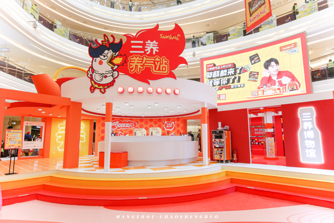 胃養(yǎng)料理店:三養(yǎng)養(yǎng)氣站怎么沒有養(yǎng)氣滿滿的火雞面呢!,專門內(nèi)設(shè)的環(huán)形吧臺(tái)可以肆意免費(fèi)品嘗!不過這火雞面的“養(yǎng)氣”不可謂不給力!根本不用擔(dān)心,生活枯燥“乏味”。三養(yǎng)當(dāng)然也是貼心的,精心準(zhǔn)備的火雞醬冰淇凌,讓你的嘴里的火辣不那么瘋狂!一旁火辣的彈幕墻也是不容錯(cuò)過的打卡點(diǎn),“我直接好家伙”、“這味道aswl!”、“鎮(zhèn)店之面”,到底哪一句是你的心聲呢!