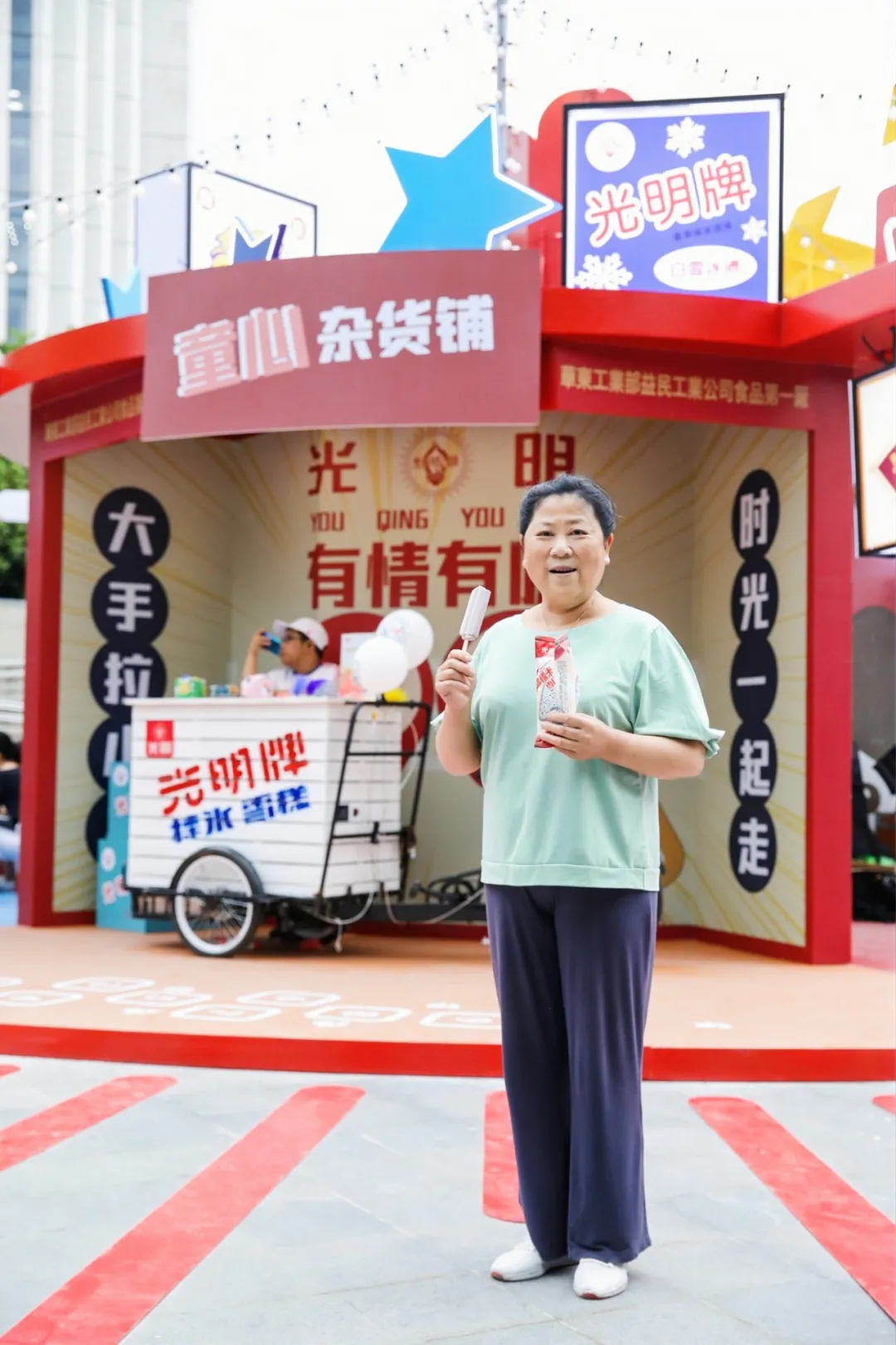 寫一封給未來的信,讓我們相約光明100歲生日?,F(xiàn)場還有有趣的DIY互動區(qū)域,有充滿回憶的小賣部,還有光明最初的宣傳車降臨現(xiàn)場,切切實實的回憶過去的時光。綠色的鐵皮車、紅色的宣傳牌……華東工業(yè)部益民工業(yè)公司食品第一廠的宣傳車映入眼簾。許多人的童年記憶里,宣傳員就是在這樣酷炫的宣傳車上為大家免費送棒冰,得到棒冰的小朋友們,會把冰棍都舔干凈。那時的一根棒冰,是幸福的味道。