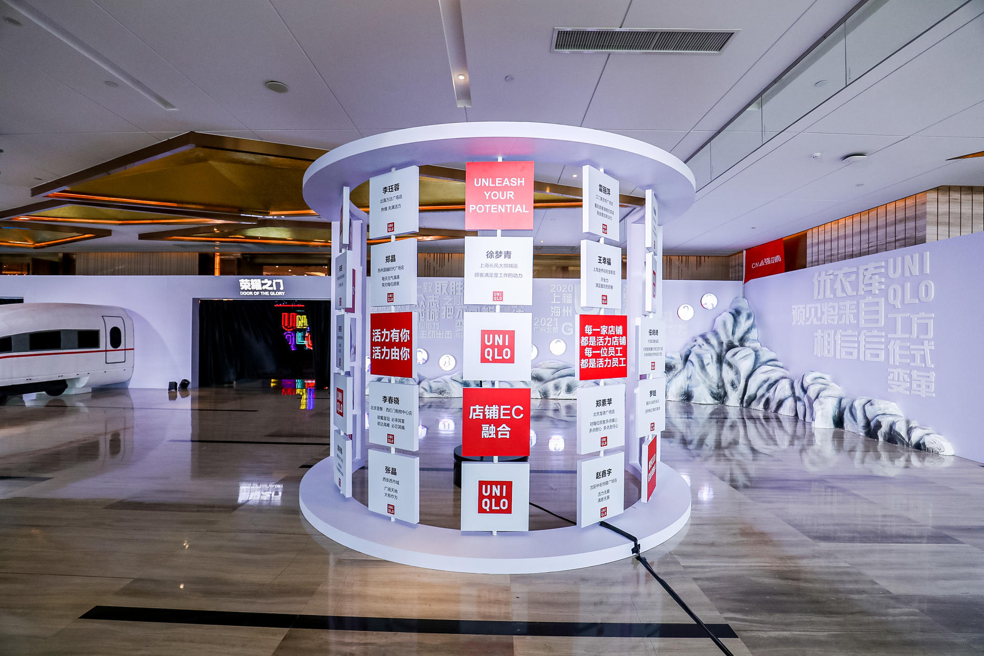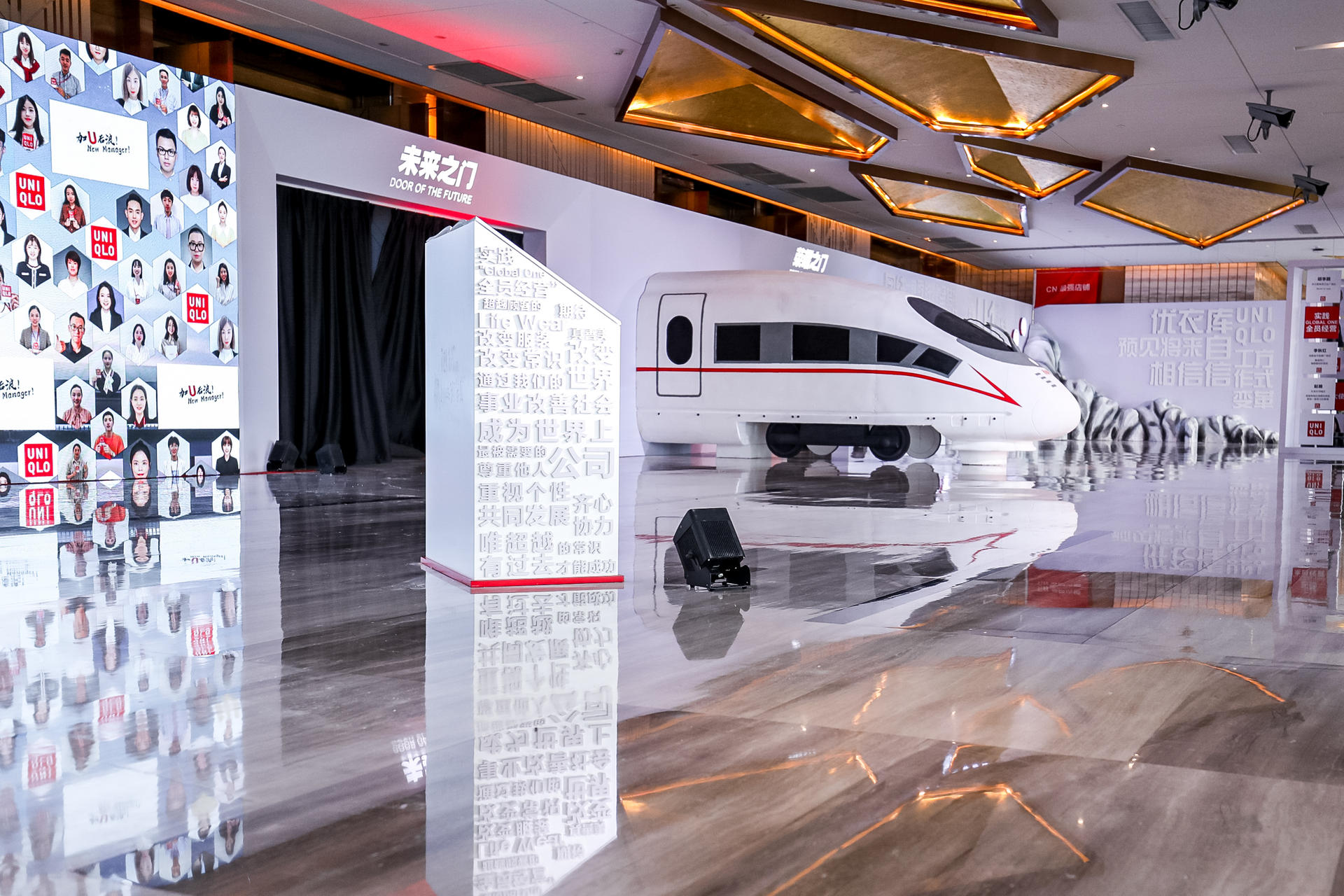 優(yōu)衣庫加速迅銷號店長大會對過去一年的優(yōu)秀店長進行了表彰,也對過去一年進行了回顧和對未來一年進行了展望?;顒蝇F(xiàn)場以動車頭為主題元素,象征對未來業(yè)績的渴望,鼓勵所有員工積極應(yīng)對,勇敢拼搏。