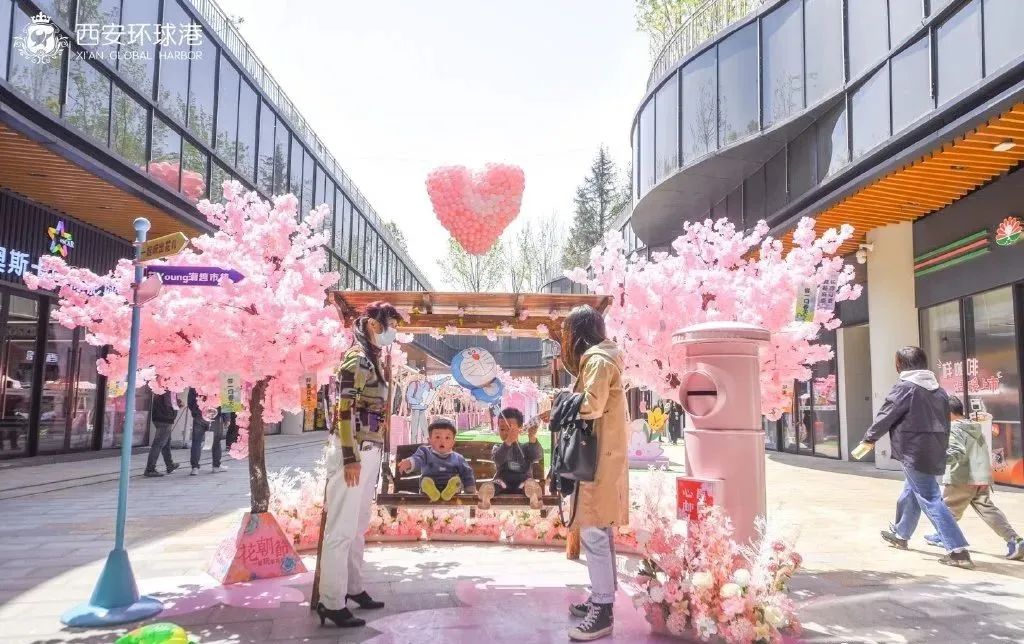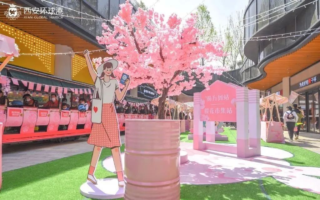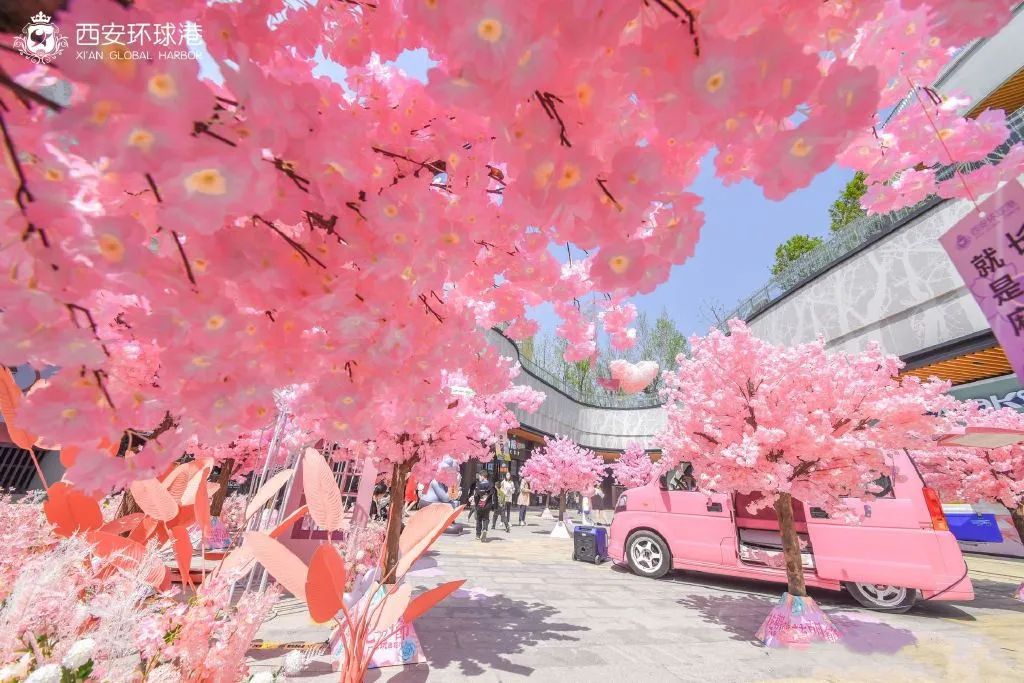 西安環(huán)球港花朝節(jié)活動策劃首發(fā)網(wǎng)紅櫻花雨太美了