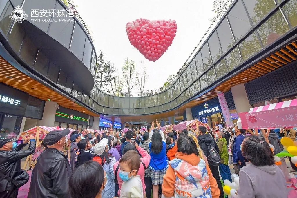 西安環(huán)球港花朝節(jié)主題為“耀目綻放,活力燃爆”,顧名思義西安環(huán)球港已把疫情后的火爆客流作為了本次活動的重要目標(biāo)。現(xiàn)場獨家首發(fā)的網(wǎng)紅櫻花雨自天而降,引起人山人海的現(xiàn)場一片歡呼,人們紛紛高舉雙手迎接“花雨”,似乎也在迎接這個春天在西安環(huán)球港的幸福。