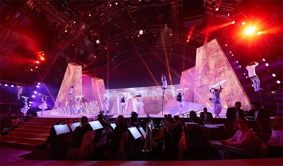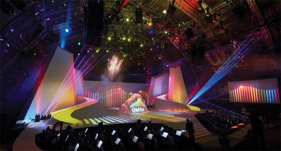 為了將奇迪亞(Qiddiya)2030的愿景展現(xiàn)在沙特王室成員面前,活動策劃并制作了一場規(guī)模空前的“盛典”,其規(guī)模在沙特阿拉伯王國是前所未有的。為了舉行盛典活動,慶典活動設(shè)計并建造了一個大型的鋼架篷屋作為活動場地。場地臨時安裝了各種齊全的舞臺,燈光等演出設(shè)備。