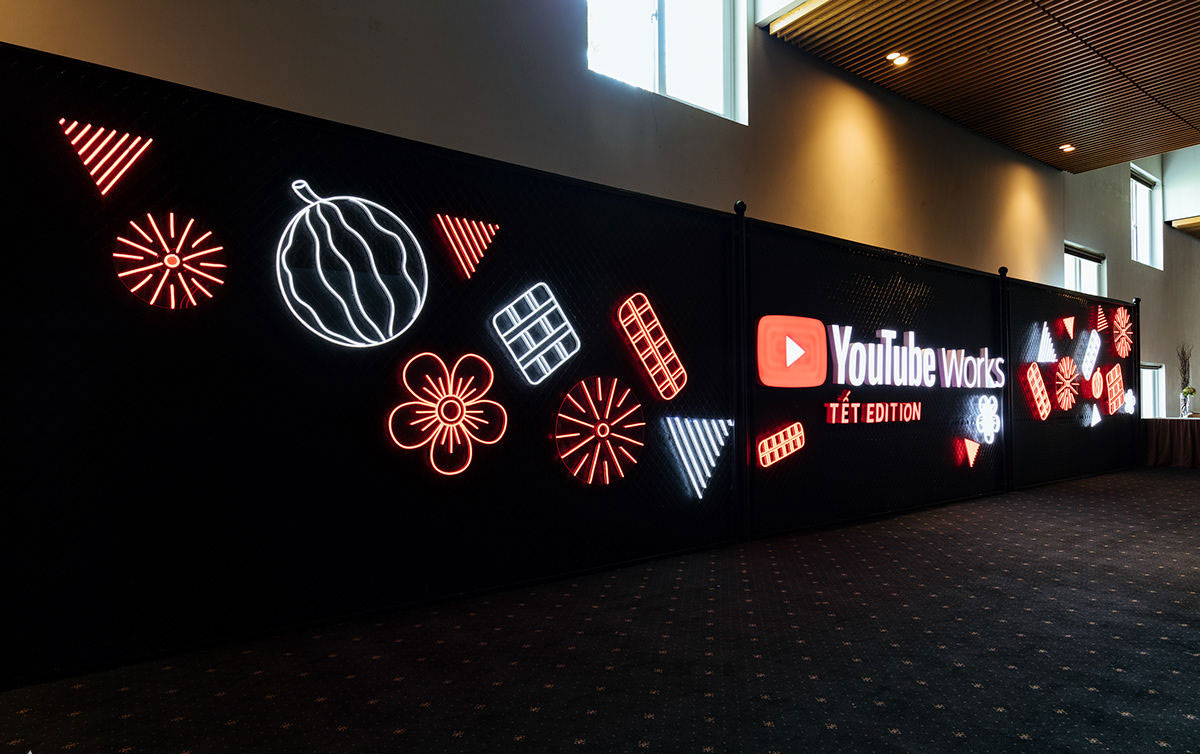 YouTube員工會議的門頭和通道的設計上依照了YouTube的品牌形象,展示了強大的品牌形象,進一步突出了YouTube對品牌形象的關注。
