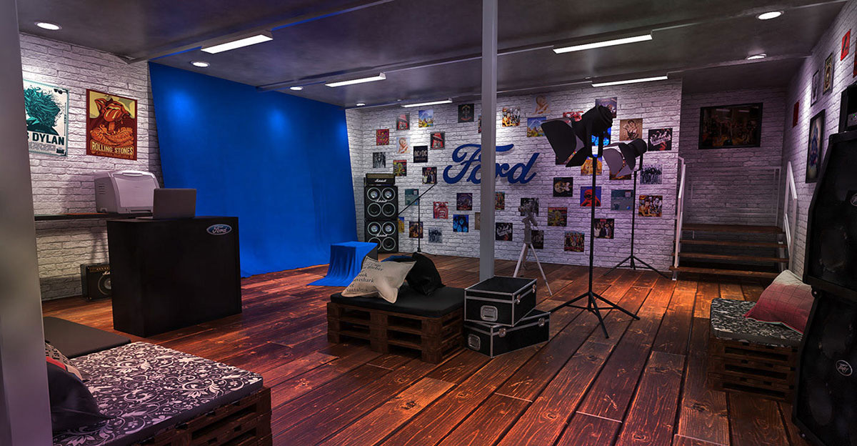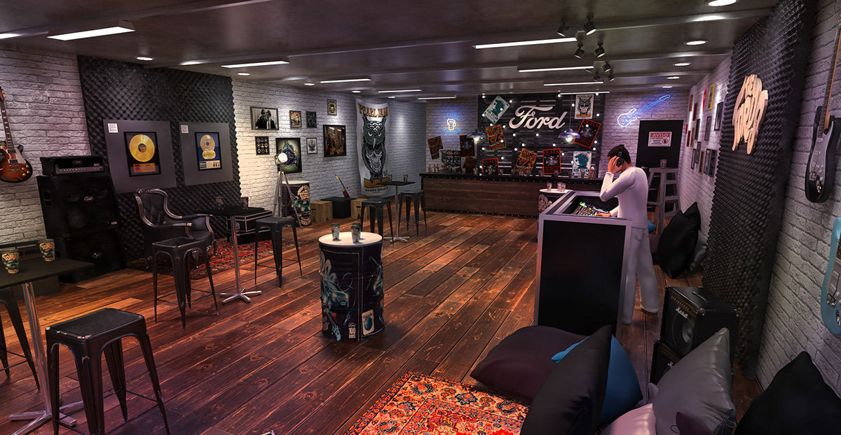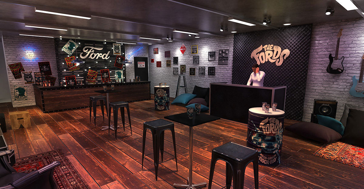 而福特竟然將搖滾這種音樂類型的元素用到了自己身上。整個活動現(xiàn)場滿滿的腰鼓風(fēng),酷炫的燈光、動感的設(shè)計、黑膠唱片、搖滾范的油桶吧臺,電吉他和搖滾樂的海報,再來點現(xiàn)場的DJ表演,這潮流范酷炫到爆,來了就想徹夜狂嗨。
