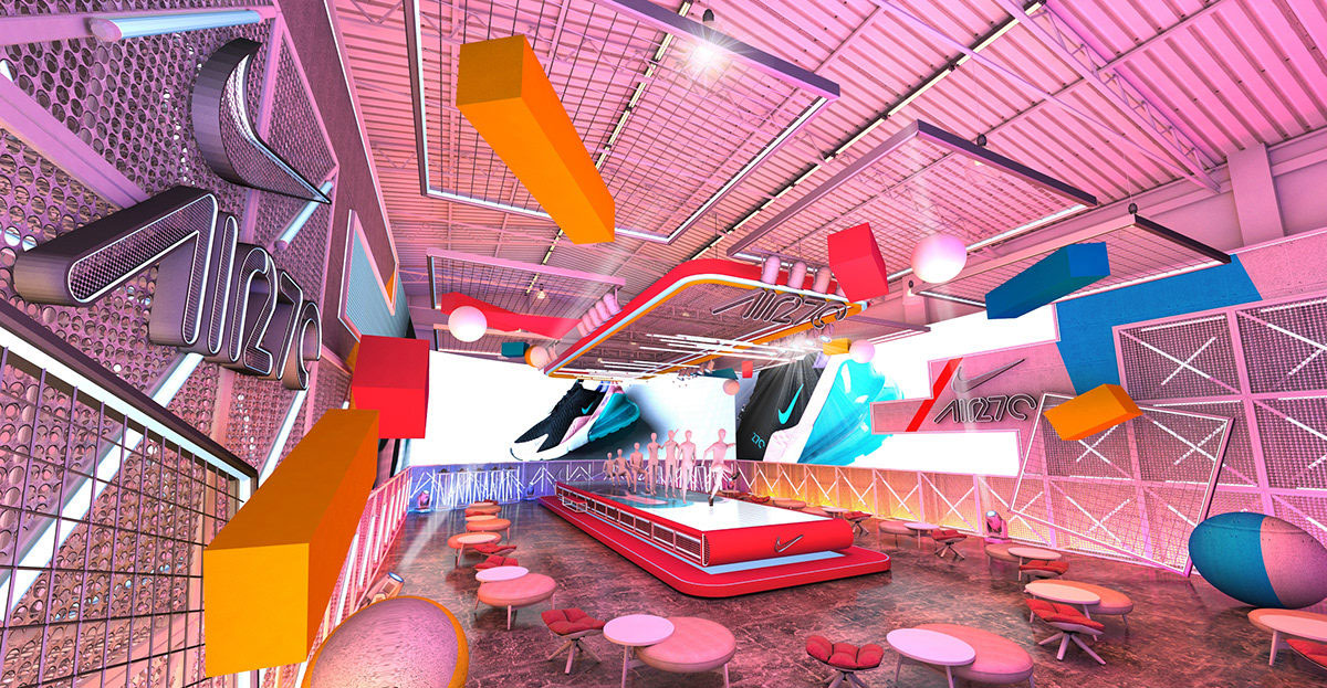 nike耐克一直將激勵全世界的每一位運動員并為其獻上最好的產(chǎn)品視為光榮的任務(wù)。為此,此次nike發(fā)布會策劃動感十足,工業(yè)風(fēng)的主體下,以粉色為主色調(diào),輔之多彩色調(diào)作為點綴,并將舞臺設(shè)計成跑步機的形式,更彰顯了其運動品牌的屬性。