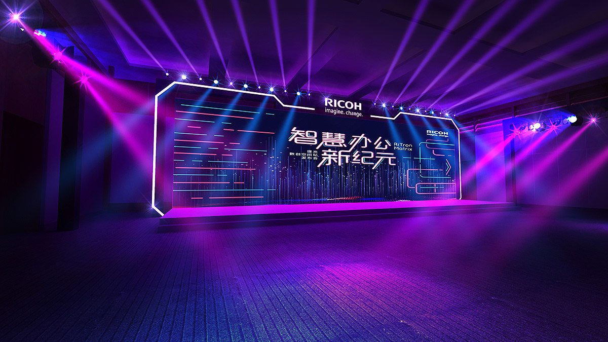這是一場(chǎng)以推出新一代智慧化、協(xié)作化、平臺(tái)化、精準(zhǔn)化辦公管理平臺(tái)的發(fā)布會(huì),發(fā)布會(huì)策劃設(shè)計(jì)了四個(gè)不同功能展現(xiàn)的互動(dòng)區(qū)域,主會(huì)場(chǎng)舞美設(shè)計(jì)上也以簡(jiǎn)潔大方為主,更多的是體現(xiàn)了一種科技感的舞美視覺(jué)效果。