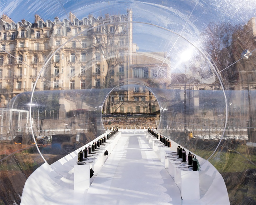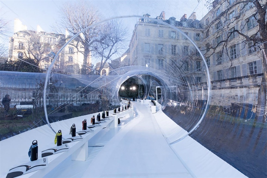 Kenzo時裝發(fā)布會活動策劃的透明管狀充氣結構環(huán)保概念極強