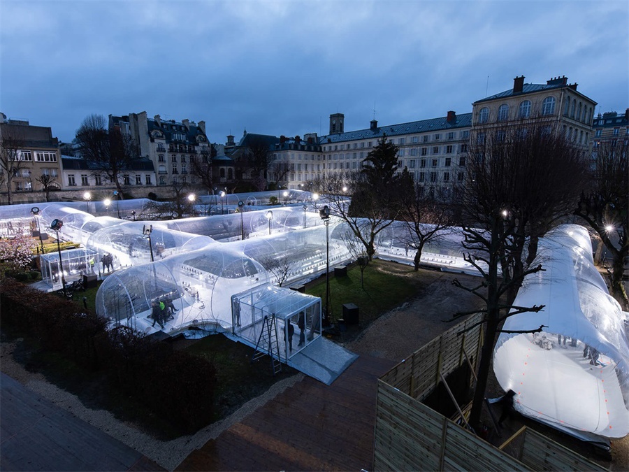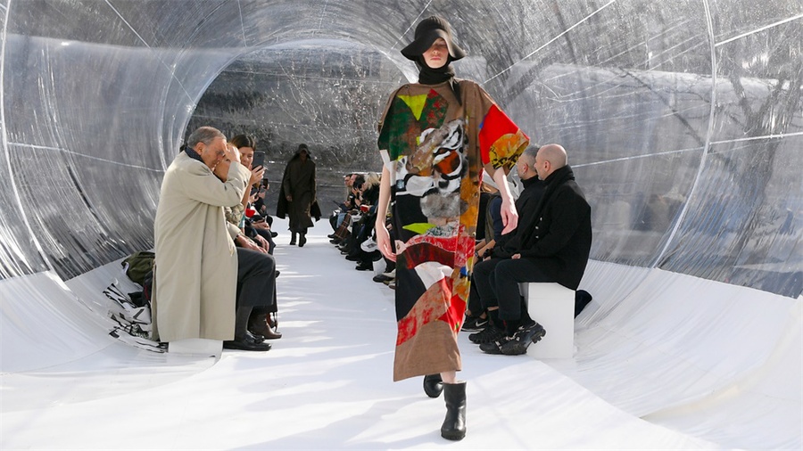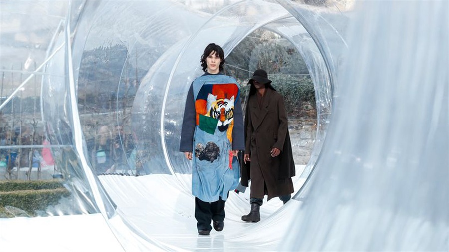 Kenzo(高田賢三)的設計總監(jiān)費利佩·奧利維拉·巴普蒂斯塔在巴黎國家青年學院的草皮草坪上,架起了一個透明的管狀充氣結構,并在這里舉行了他來到Kenzo后的第一個設計系列的發(fā)布——2020秋冬發(fā)布會。大型的充氣裝置將會在Kenzo未來的活動、派對以及廣告中反復的使用,這也是活動設計人對環(huán)保的貢獻。