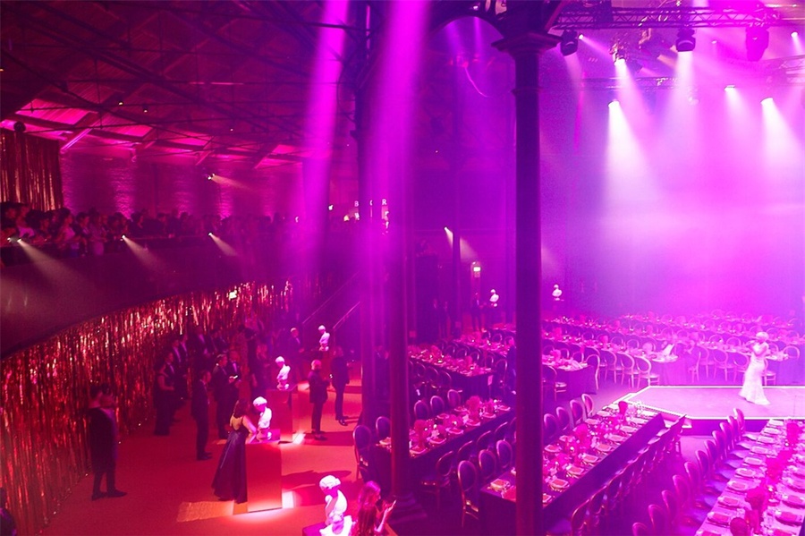寶格麗(BVLGARI意大利珠寶品牌)舉辦了一場(chǎng)慶祝其Wild Pop系列珠寶發(fā)布的晚宴,集中體現(xiàn)了該品牌打破常規(guī)的珠寶制作方法。圓屋(Roundhouse)是英國(guó)地下音樂、朋克運(yùn)動(dòng)的歷史中心,被選為這次活動(dòng)的地點(diǎn),空間設(shè)計(jì)的靈感來自20世紀(jì)80年代的舞會(huì)。房間里充斥著粉紅色的燈光,裝飾著霓虹燈、金屬花環(huán)和鏡面茶幾。明亮的石膏雕塑,古代半身像,可樂罐和霓虹粉紅色的波普藝術(shù)風(fēng)格的香蕉成為桌面裝飾物。晚會(huì)以美國(guó)迪斯科音樂家Amii Stewart的演唱開始,接著是各種舞蹈,麥當(dāng)娜、皇后樂隊(duì)、威猛樂隊(duì)等80年代的熱門歌曲和其他偶像歌手。珠寶時(shí)裝表演以燈光表演開始,隨后是節(jié)日的煙花、閃閃發(fā)光的五彩紙屑和結(jié)束后的派對(duì)。