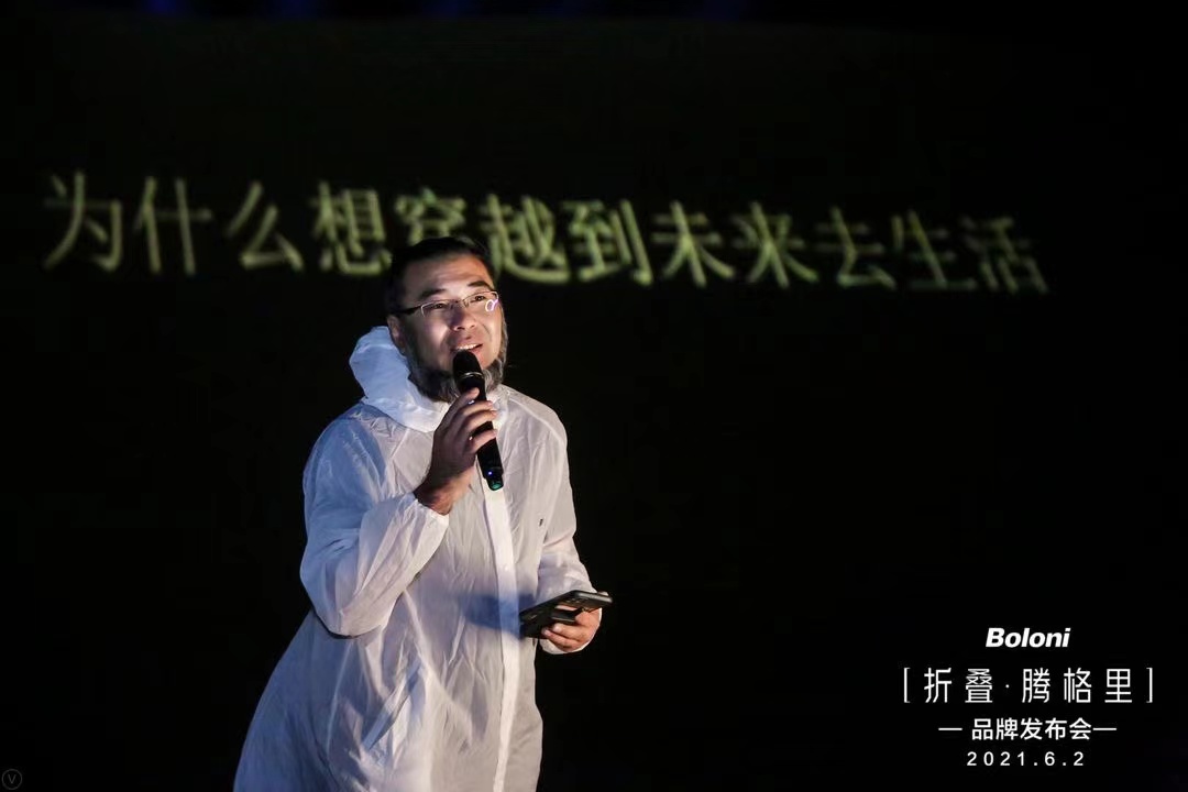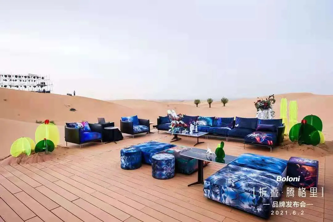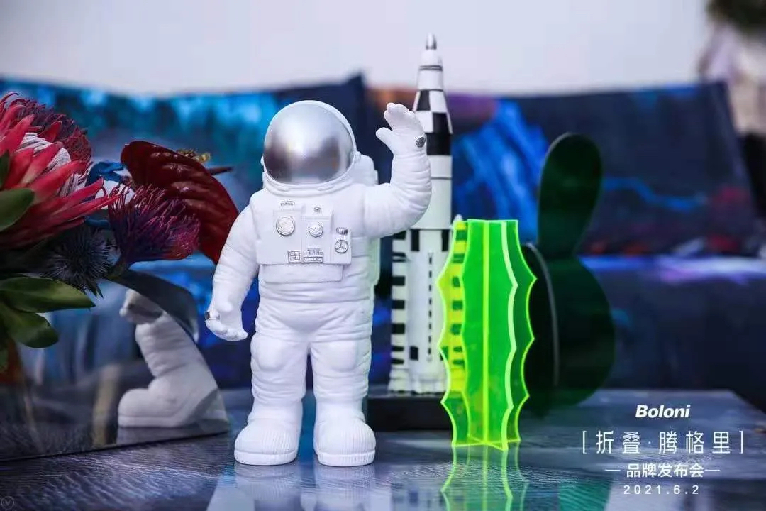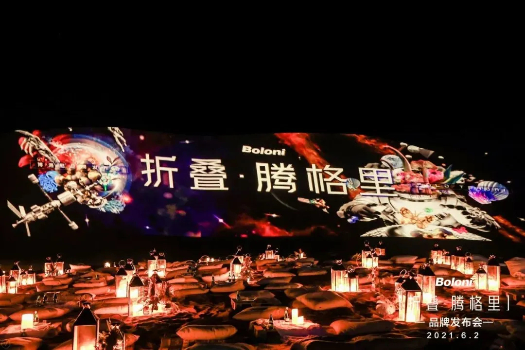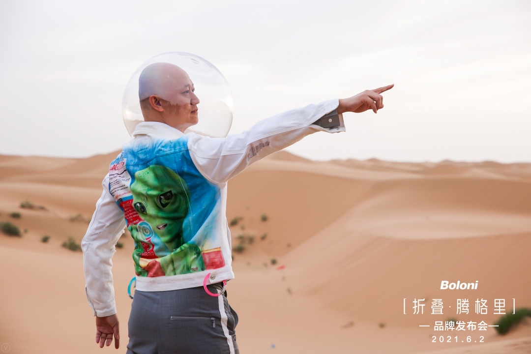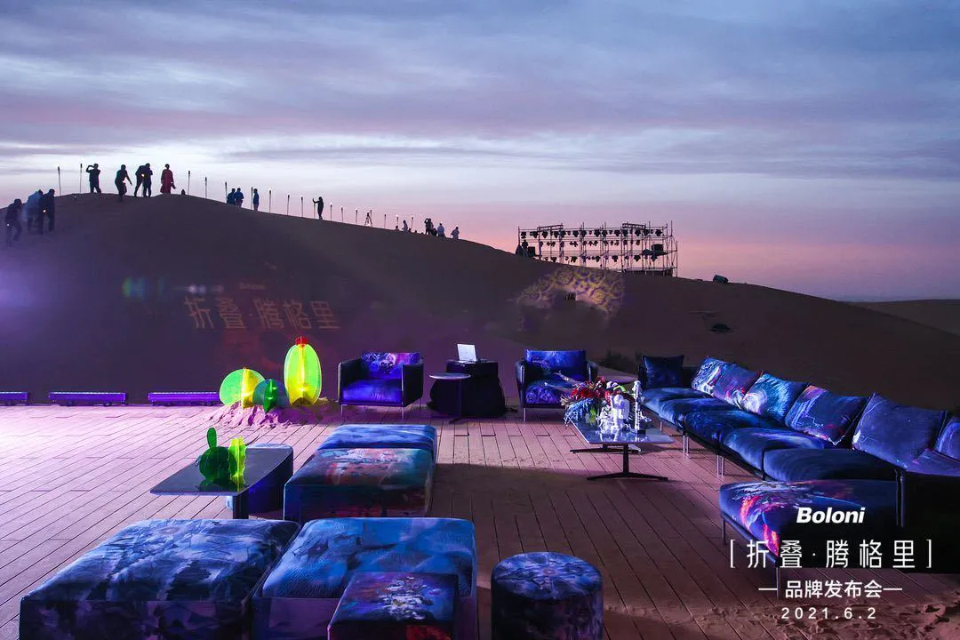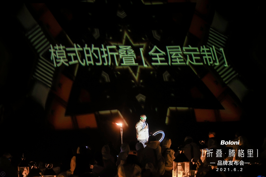 中國第四大沙漠,蒙古語意為長生天。夜晚仰視即見銀河,在臨于沙漠,仰望星河的中心。博洛尼就是在這樣的地方舉辦了2021年火星櫥柜發(fā)布會,并以讓人難以聽懂的“折疊”為主題,帶著來賓體驗一把火星上的生活。發(fā)布會是在一處沙山上舉行,以沙石作為大屏投影,來賓席地而坐,為了高度還原大家想象的火星生活,博洛尼用宇航員、火箭、透明玻璃面罩等元素給來賓打造沉浸式的參會體驗。