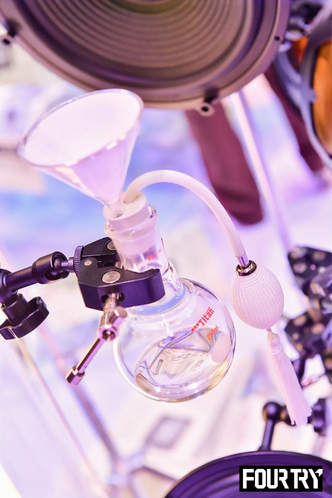 FOURTRY用網(wǎng)狀的電線(xiàn)將每一個(gè)觀展人的“對(duì)話(huà)”編織、串聯(lián)起來(lái),以此連接每個(gè)人的內(nèi)心世界,它們就像是一群個(gè)性迥異又閃閃發(fā)光的“能源體”,為FOURTRY這個(gè)“電源”持續(xù)供給電力,F(xiàn)OURTRY又將轉(zhuǎn)化好的“源動(dòng)力”持續(xù)輸送給每一位觀展人,彼此交織……FOURTRY與HOOKYO攜手推出兩款馥郁芬芳與迷幻融合的花果香調(diào)—「牡丹花下」與「醉生夢(mèng)死」,表達(dá)追逐生命的樂(lè)趣和精神的自由,同時(shí)也在展覽現(xiàn)場(chǎng)送出定制聞香卡片,讓每一個(gè)觀展人將香味帶在身邊。