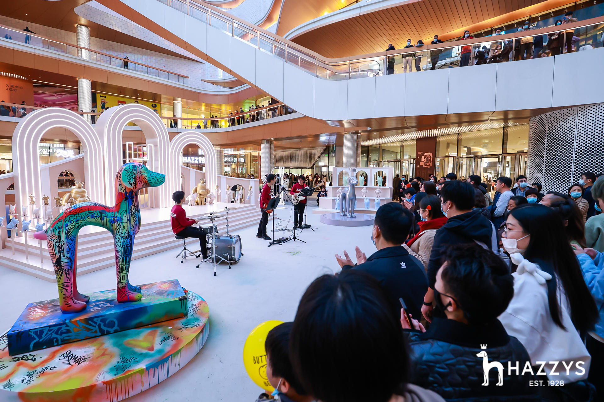 2021 HAZZYS萌寵展落座于上海大寧久光中心,給大家?guī)砣碌目扉W購物體驗(yàn),整個(gè)展區(qū)被布置為濃濃的藝術(shù)氣息的殿堂,開幕現(xiàn)場邀請(qǐng)Ethan進(jìn)行涂鴉藝術(shù)創(chuàng)作,并有樂隊(duì)為觀眾獻(xiàn)上精彩表演。