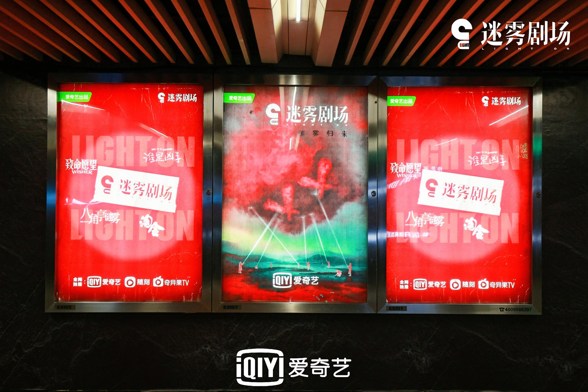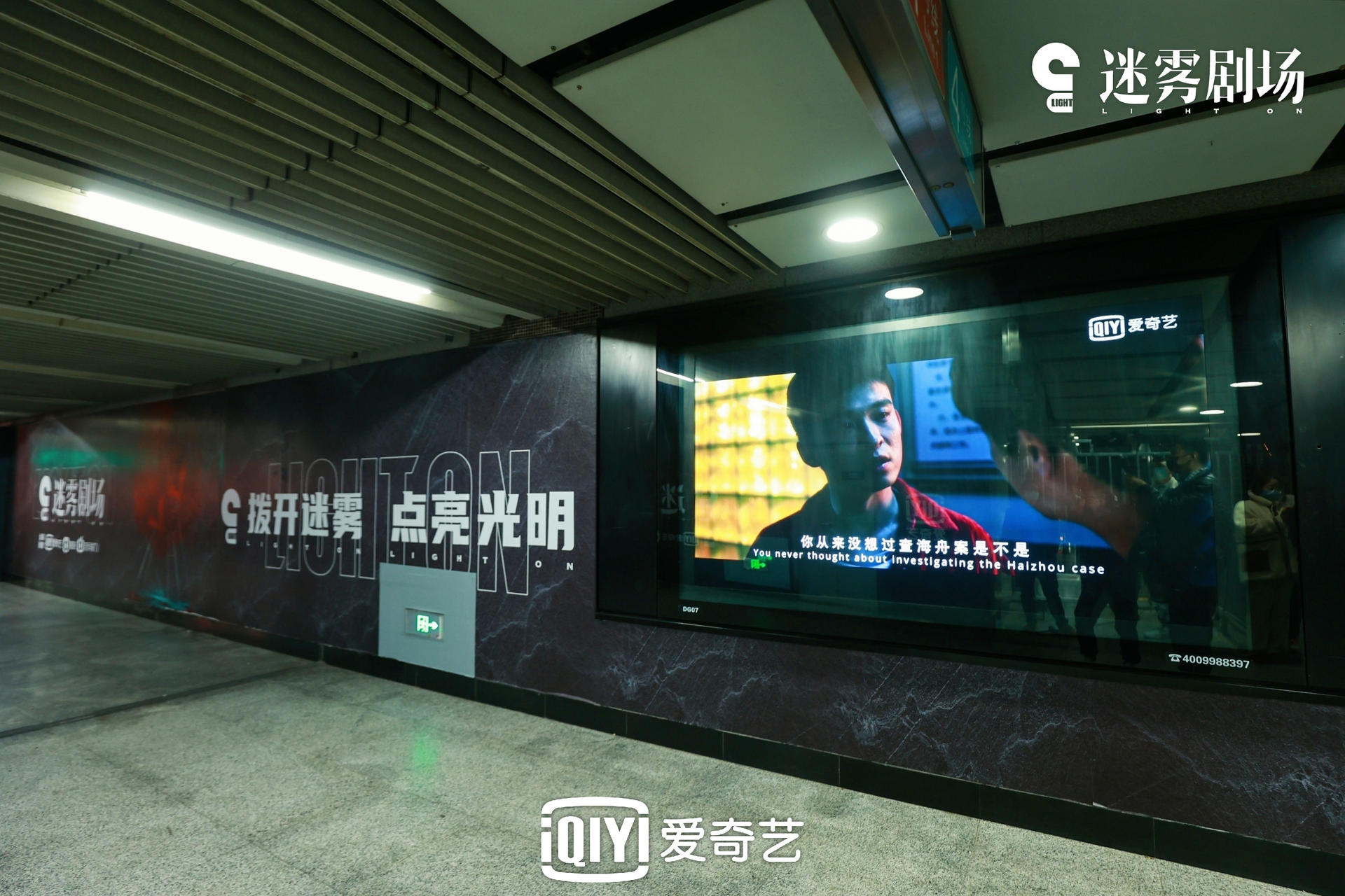 愛奇藝在通勤路上為“打工人”打造了一場沉浸式互動展覽,通過懸疑重重的氛圍為過路人營造出“身臨其劇”、撲朔迷離的懸疑體驗。現(xiàn)場利用全息投影技術在地鐵站中呈現(xiàn)“迷霧魔方”,以3D形式立體化展現(xiàn)“我們是誰——迷霧劇場、我們做什么——懸疑類型劇”,強烈的視覺沖擊吸引路人駐足,迷霧般的場景將人置身于劇集之中,實現(xiàn)更深刻的心智卡位。
