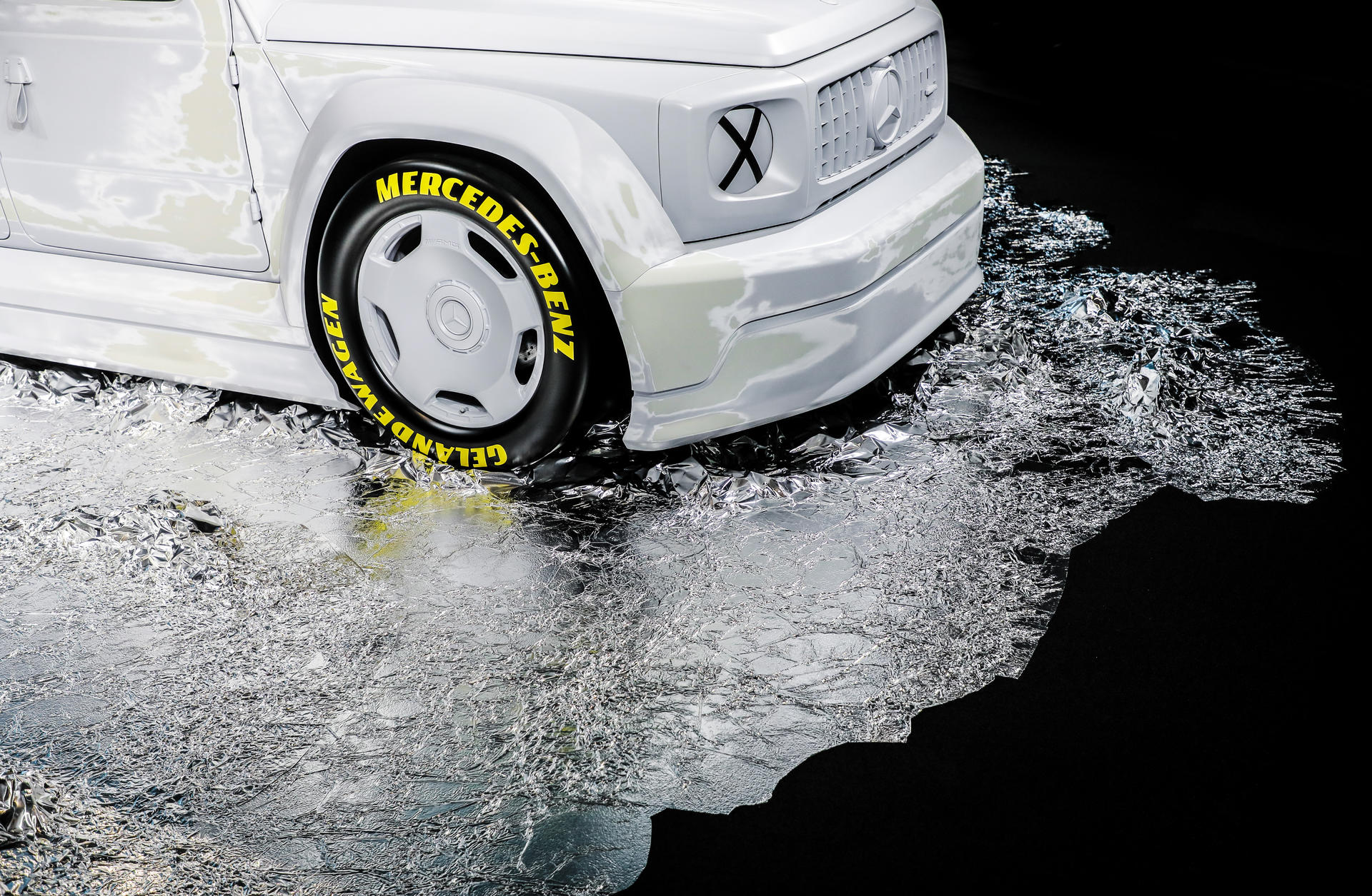 此次跨界合作所保留的奔馳G級越野車原始設(shè)計(jì)理念彰顯于這輛藝術(shù)概念車簡潔硬朗的方盒子外觀。極簡設(shè)計(jì)使得車輛的方形結(jié)構(gòu)更為凸顯,而車身外部的手工打磨痕跡、未加遮擋的焊縫和被去掉的轉(zhuǎn)向指示燈、后視鏡及保險杠則強(qiáng)化了車子鮮明的運(yùn)動感和承繼自G級越野車系列的獨(dú)特魅力。