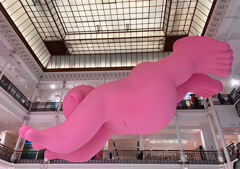 這些巨型粉紅人全都出自法國藝術(shù)家Philippe Katerine之手,他一人身兼導(dǎo)演、作家、作曲家、歌手、作詞家以及畫家多重身份,絕對(duì)稱得上是多才多藝。Katerine不時(shí)出演喜劇,蓄有一把大胡子的形象亦讓大家對(duì)他印象深刻。雖然是個(gè)專業(yè)演員,但他的幽默卻不是演出來,他更將這種制造快樂的能力轉(zhuǎn)化為藝術(shù)創(chuàng)作。這位童心未泯的創(chuàng)作者打造出多個(gè)外型逗趣的粉紅色雕塑,放置到巴黎百貨公司的中庭,并一直延伸到二樓的展覽空間,成功吸引不少人注目。
