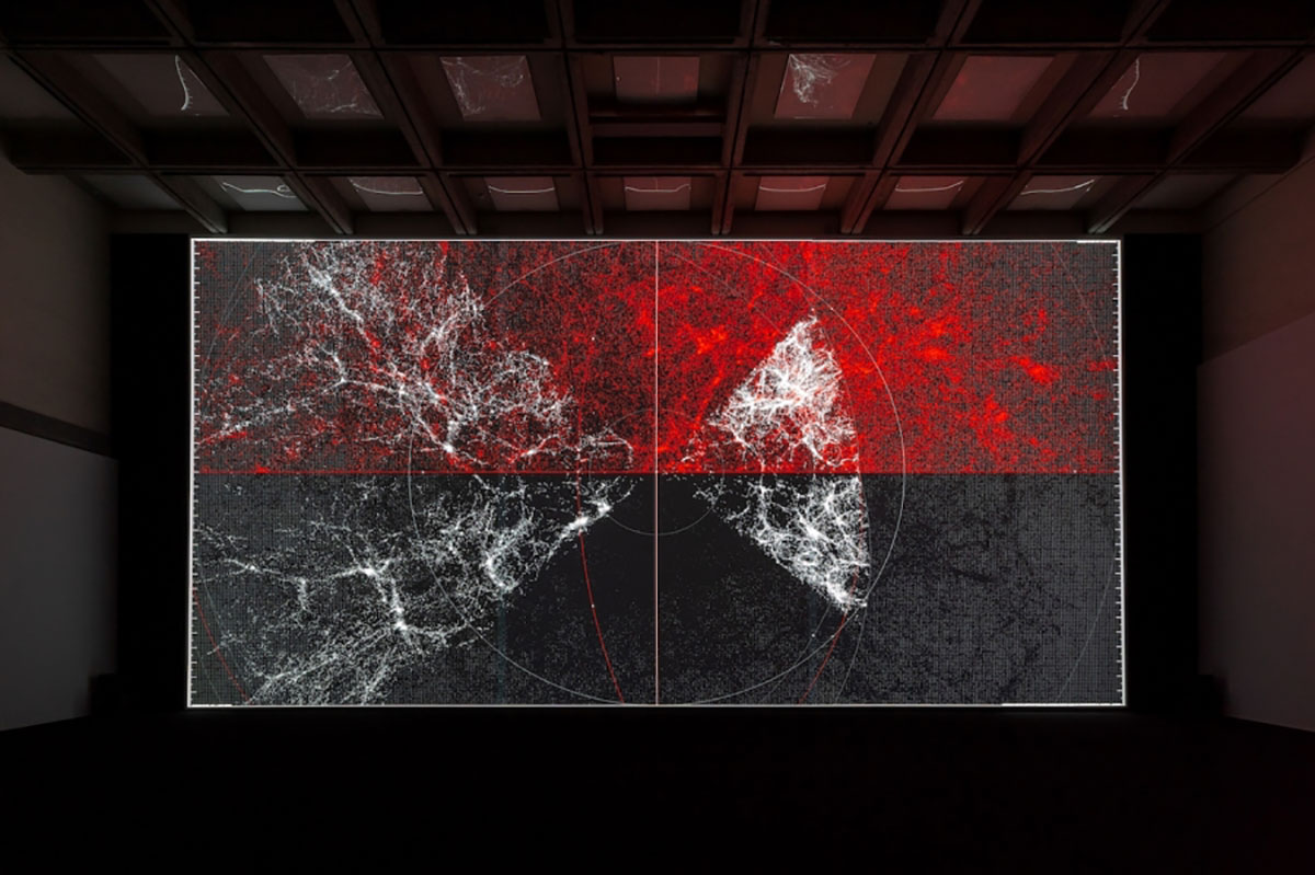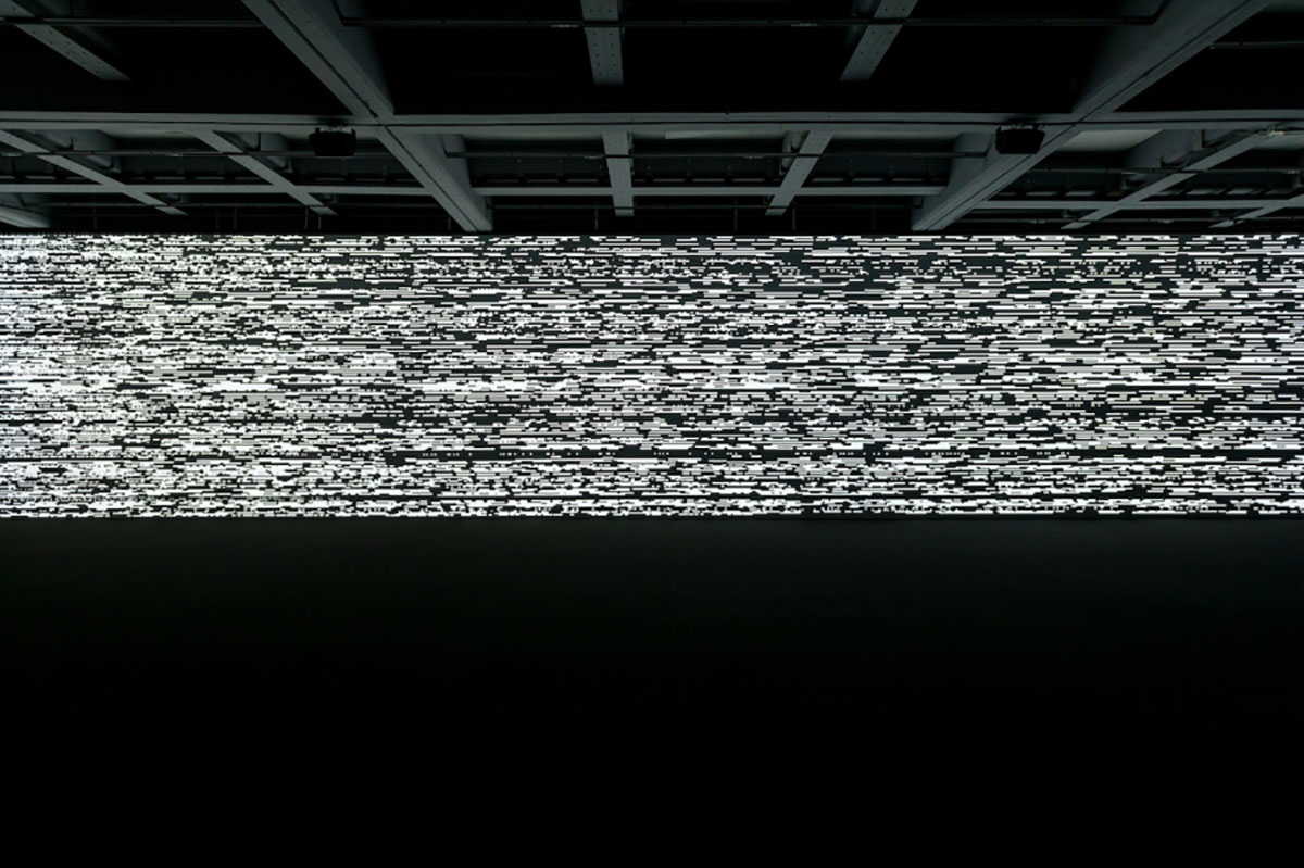 極簡主義電子音樂大師和前衛(wèi)藝術(shù)大師池田亮司在過去10年中,首次在北美館的一樓開設(shè)了亞洲最全面的大型個展。此次展覽策劃的選項包括大型聲音雕塑、視聽裝置、燈箱和飛機,部署了跨度微觀和宏觀的沉浸式時空場景,以及專門為此次展覽創(chuàng)作的幾個圖形設(shè)計。